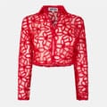 This Amylynn cropped top features a floral pattern and long sleeves, offering a stylish look. The shirt collar and button closure add a classic touch, while the logo embellishment provides a subtle brand detail. -