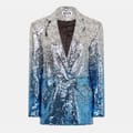 This blazer from the workwear collection features a lapel collar and a button closure. The relaxed fit and straight hem offer a comfortable yet stylish look. The sequin embellishments add a touch of elegance, making it a perfect choice for professional settings. -