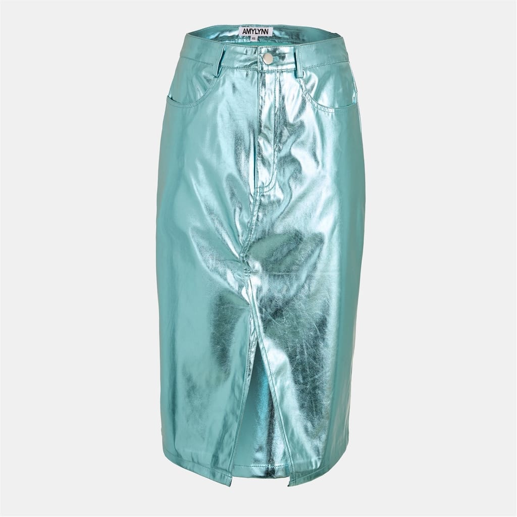 Discover the Amylynn metallic pencil skirt, a chic addition to your casual collection. This midi-length skirt features a slim fit, accentuated by a button and zip fly closure. The design is completed with practical pockets, offering both style and functionality. Perfect for those seeking a modern and sophisticated look. -