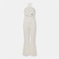 This jumpsuit features a halter neck and spaghetti straps, offering a sleek sleeveless design. The slim fit accentuates the silhouette, while the cut-out embellishments add a touch of flair. Perfect for those seeking a stylish and modern look. -