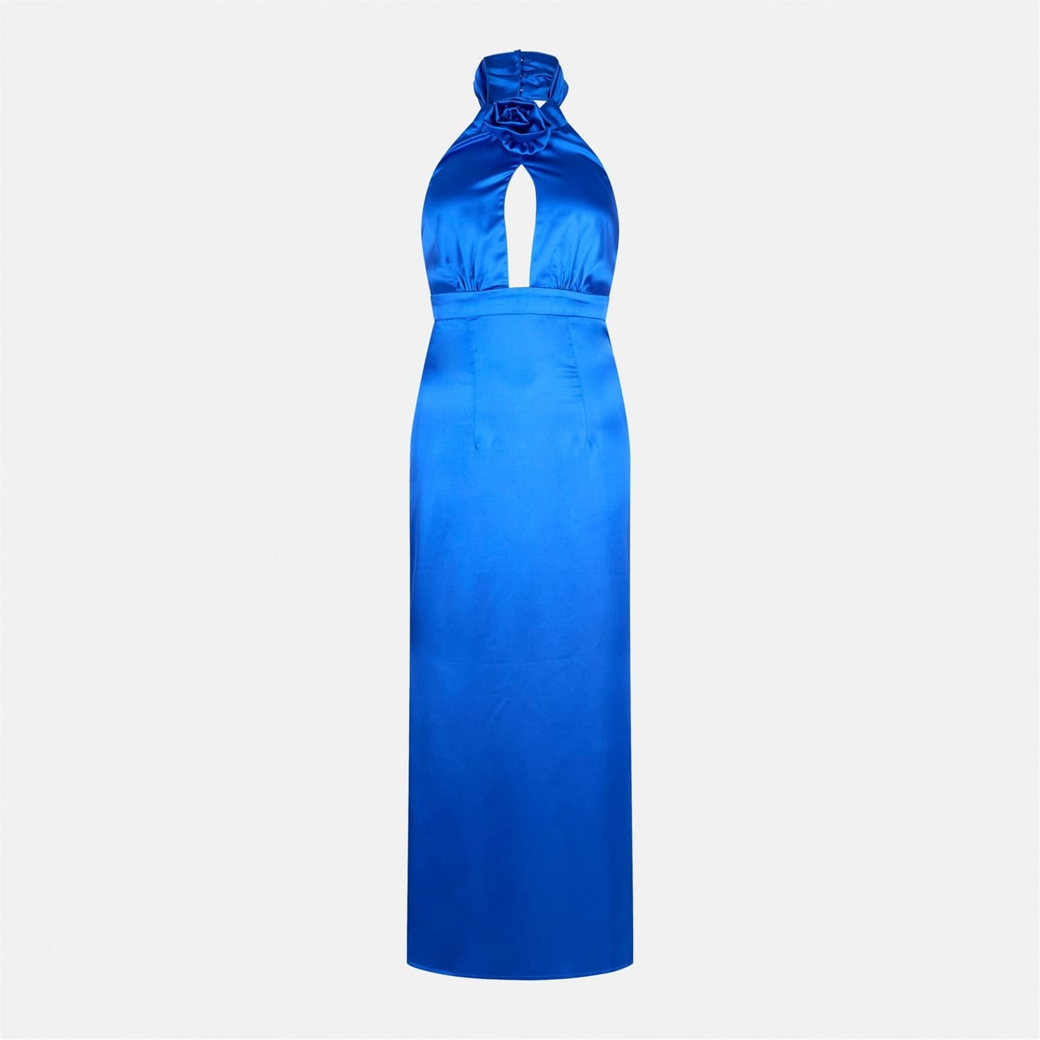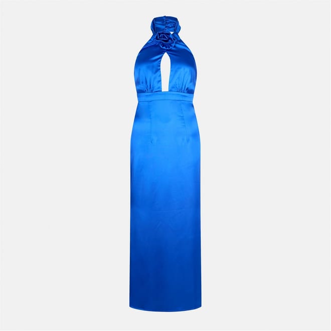 This Amylynn maxi gown is a stunning addition to any wardrobe. Featuring a halter neck and spaghetti straps, it offers a sleek silhouette with a slim fit. The solid pattern and straight hem create a timeless look, while ruffle embellishments add a touch of elegance. Perfect for special occasions, this dress combines style and sophistication effortlessly. -