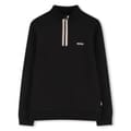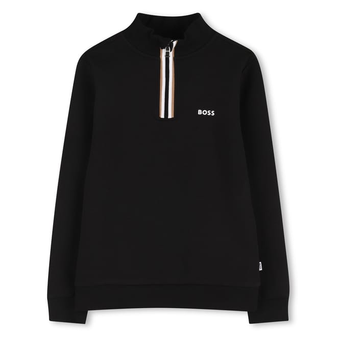This Boss top is a casual essential featuring a solid pattern and a regular fit. It comes with a long sleeve design and a ribbed cuff for added comfort. The top is adorned with a logo embellishment, adding a touch of brand identity. The mock neck and zipper closure provide a modern look, making it a versatile addition to your wardrobe. -