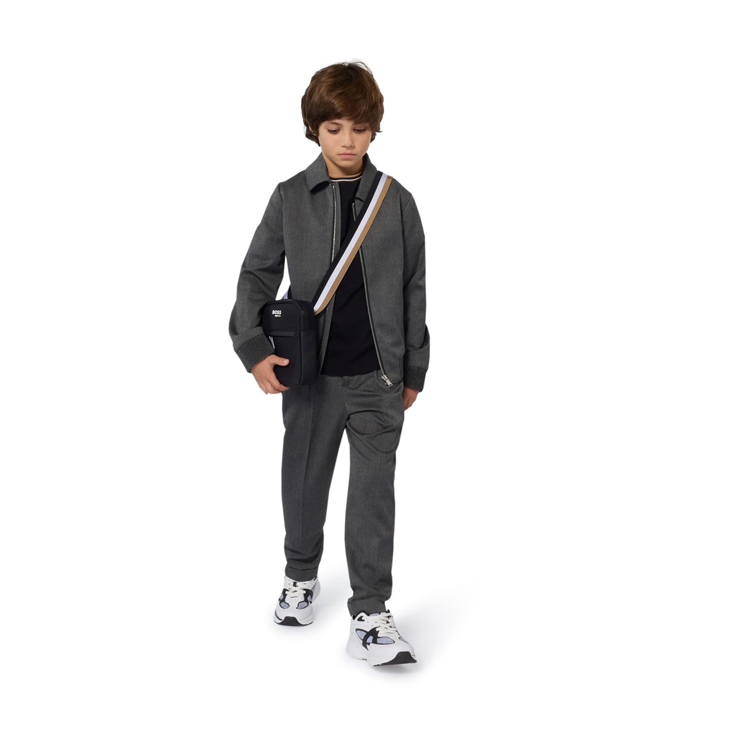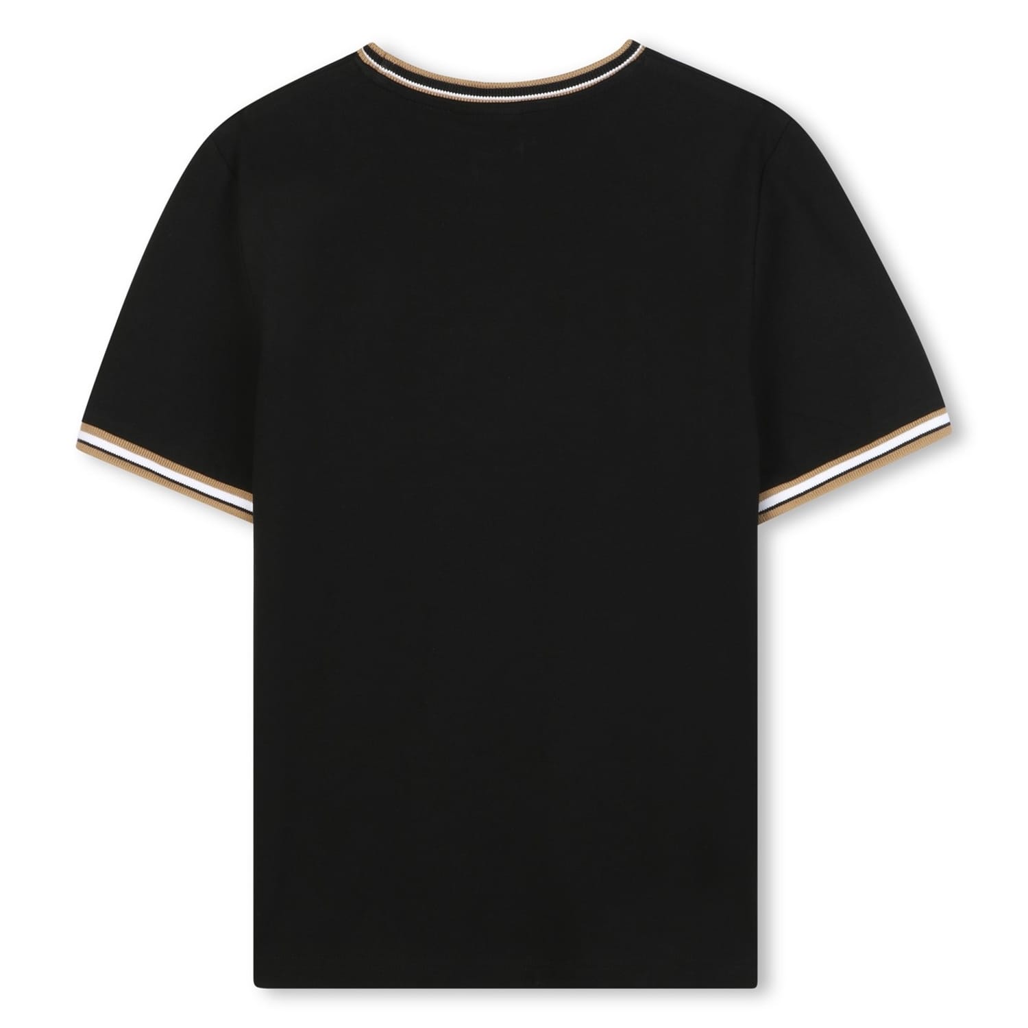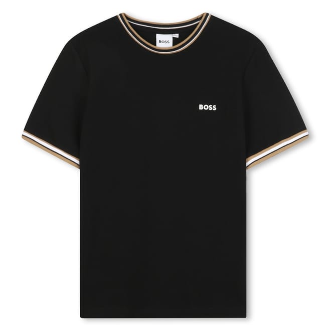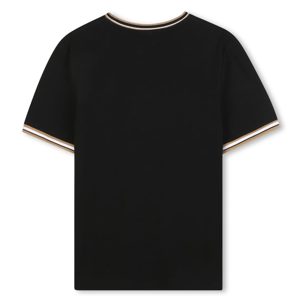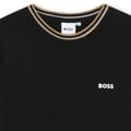 This Boss top is a casual essential, featuring a regular fit and short sleeves. The solid pattern is complemented by a rib crew neck and ribbed cuffs, adding a touch of sophistication. A subtle logo embellishment completes the look, making it a versatile addition to any wardrobe. -