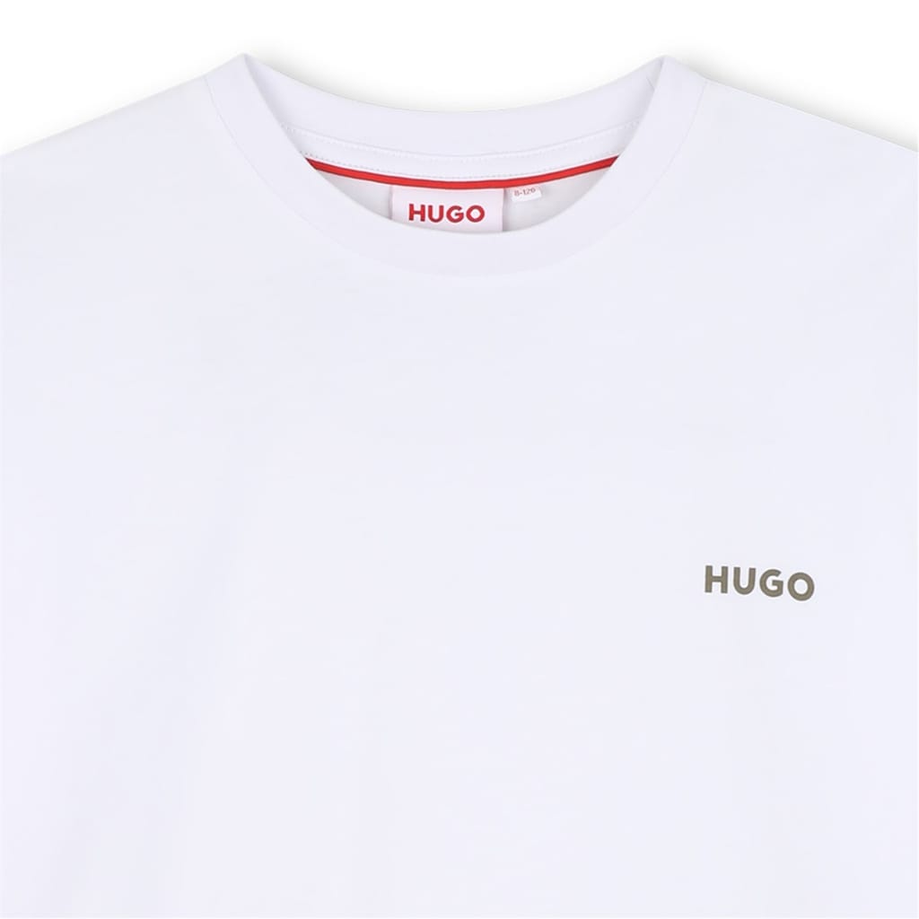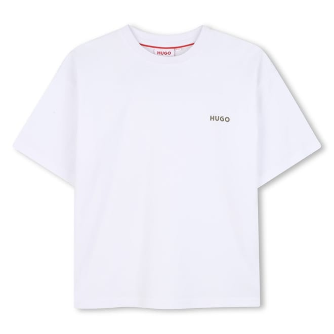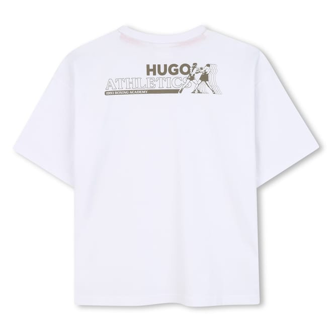 This Hugo top is a casual essential, featuring a regular fit and short sleeves. The solid pattern is complemented by a crew neck and subtle logo embellishment. The lettering graphic adds a touch of style, making it a versatile piece for any wardrobe. -