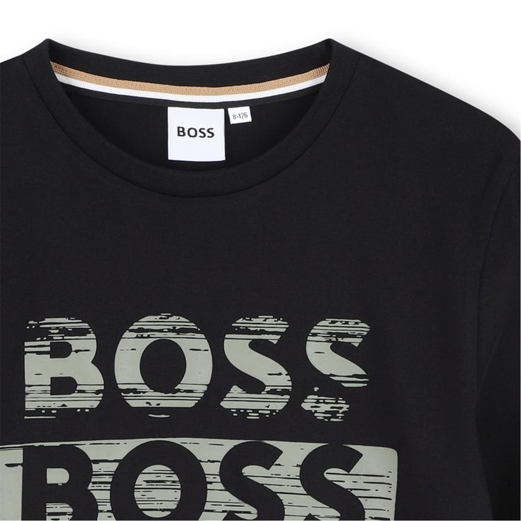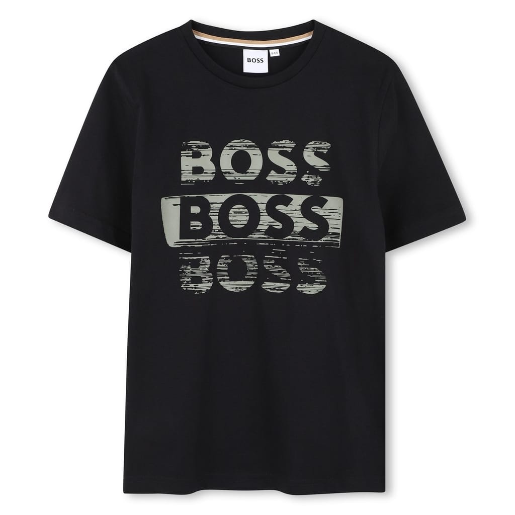 This Boss top features a regular fit with a crew neck and short sleeves. Adorned with a graphic print and lettering, it showcases a logo embellishment for a stylish touch. -