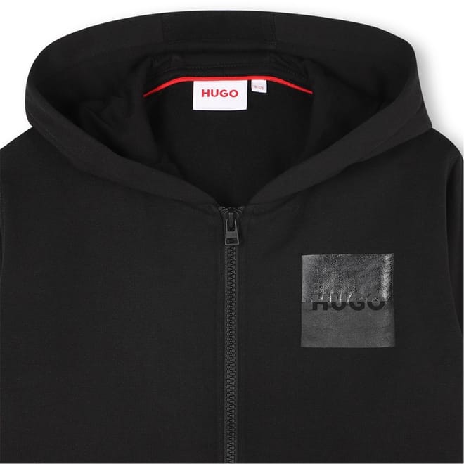 This Hugo sweatshirt jacket features a hooded design with a zipper closure, offering a regular fit. The solid pattern is complemented by ribbed cuffs and hem, providing a comfortable and stylish look. The jacket is adorned with a logo embellishment, adding a touch of brand identity. -