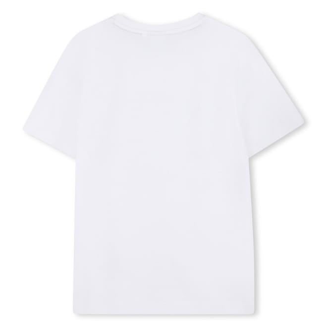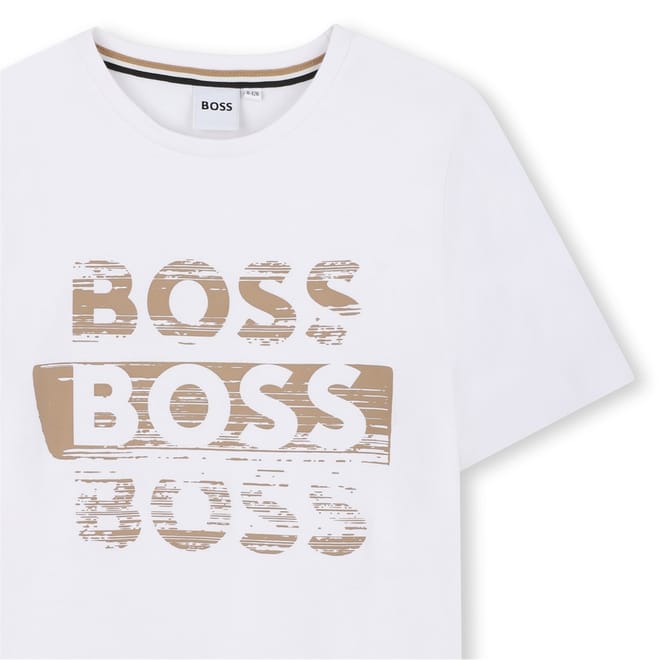 This Boss top features a regular fit with a crew neck and short sleeves, perfect for casual wear. The graphic print with lettering adds a stylish touch, while the logo embellishment enhances its appeal. -