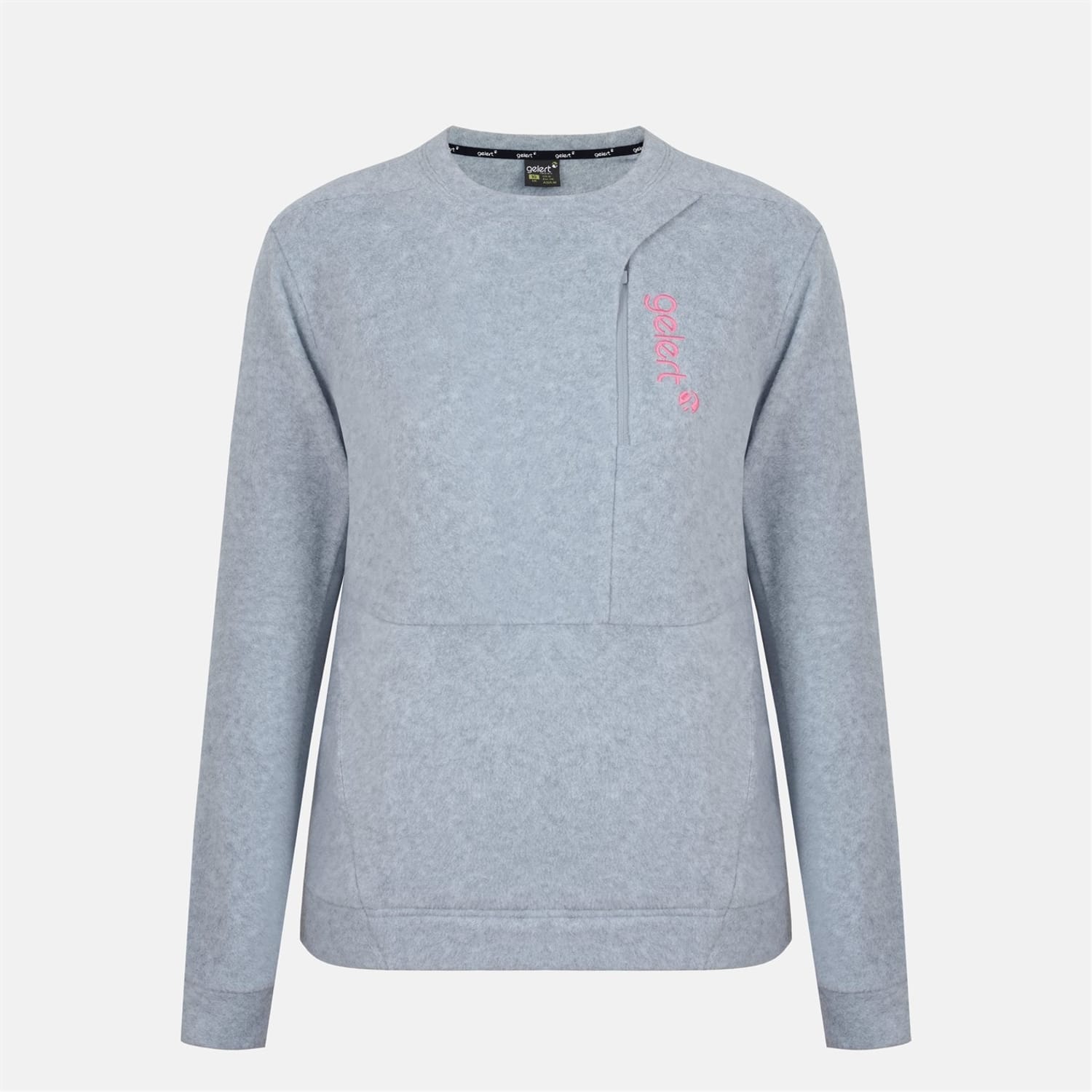 This Gelert top is designed for winter with a solid pattern and long sleeves. It features a crew neck and a regular fit, ensuring comfort and style. The top includes a zipper closure and fitted cuffs for a snug fit. Embellished with a chest pocket and embroidered lettering, it adds a touch of detail to your wardrobe. -