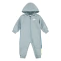 Nike's snowsuit jumpsuit features a hooded neck and long plain sleeves, offering a regular fit. The design includes a convenient zipper closure and is adorned with a logo embellishment, ensuring a stylish yet functional look for colder climates. -