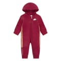 This Nike snowsuit features a hooded neck and long plain sleeves, offering a regular fit. The design includes a convenient zipper closure and is adorned with a logo embellishment, adding a touch of brand identity. -
