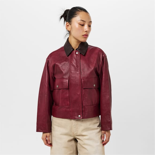 The Nonie Leather Jacket from Rag and Bone is a designer outerwear piece featuring a tailored fit and hardware detailing. The precision design delivers functional style while the hardware provides quality finishing.
