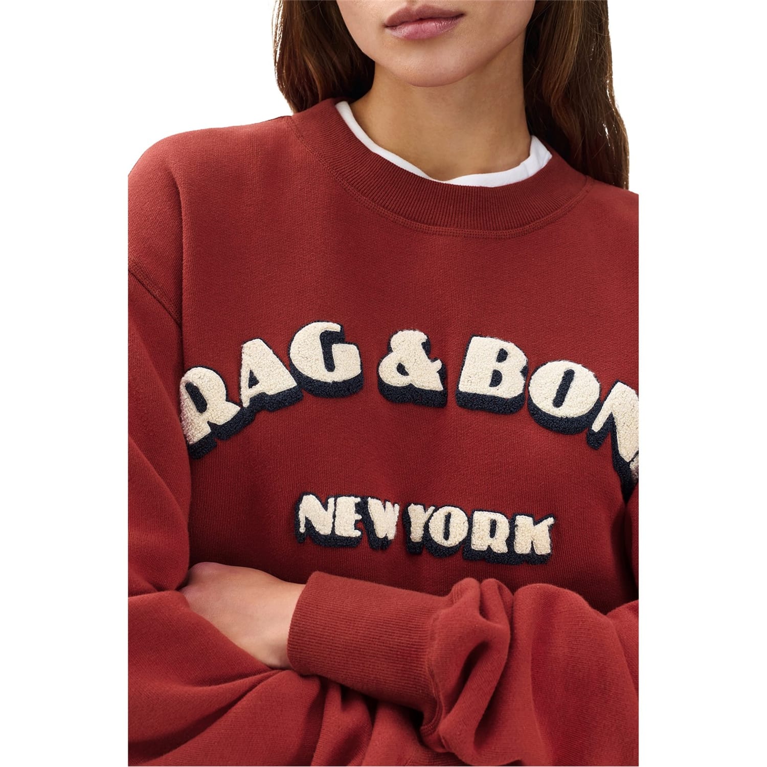 Discover the rag & bone top featuring a long sleeve design with a drop shoulder style. This regular fit piece is adorned with lettered branding and a logo print, highlighted by arch lettering. The ribbed collar and ribbed cuffs add a touch of detail, making it a versatile addition to your wardrobe. -