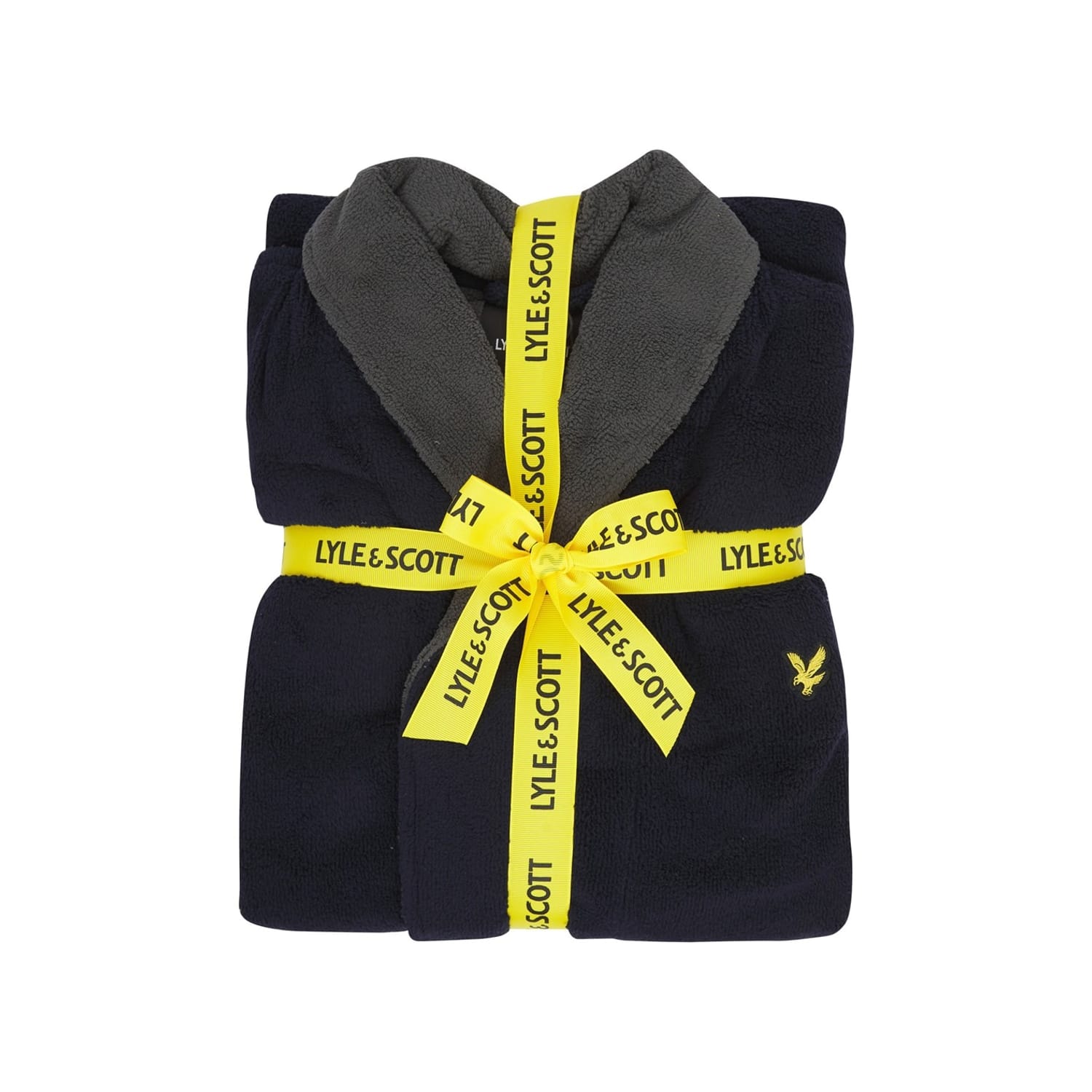 Indulge in comfort with Lyle & Scott's sleepwear robe, featuring a relaxed fit and contrasting trim. This loungewear essential is adorned with a subtle logo and a tie closure, offering both style and ease. Perfect for unwinding, this robe combines functionality with a touch of elegance. -