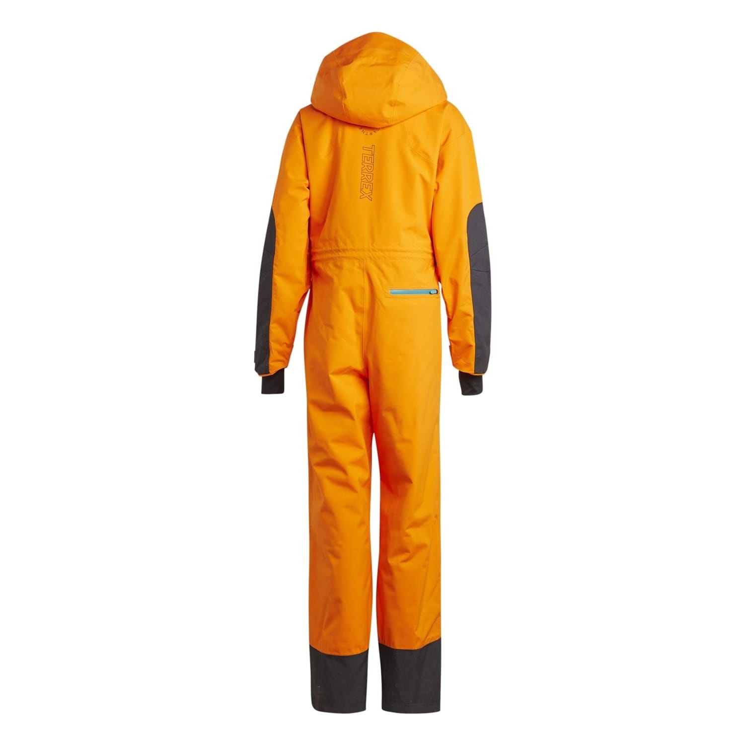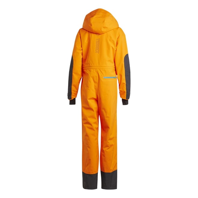 This adidas skisuit is designed for functionality and style. Featuring a regular fit, it comes with long plain sleeves and a secure zipper closure. The jumpsuit includes practical pockets and zipped pockets, ensuring convenience and utility. Ideal for those seeking a blend of comfort and practicality in their outerwear. -