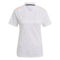 This adidas top is designed for performance, featuring a geometric pattern and short sleeves. It offers a regular fit and includes a logo embellishment, making it a stylish choice for activewear enthusiasts. -