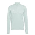This adidas top is designed for performance, featuring a zip neck and a half zipper closure. It has long sleeves with ribbed cuffs, offering a regular fit. The solid pattern and logo embellishment add a touch of style, making it a perfect choice for activewear enthusiasts. -