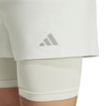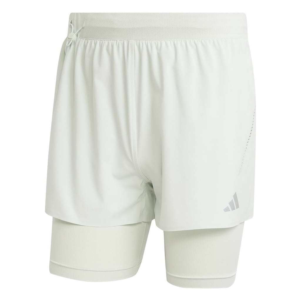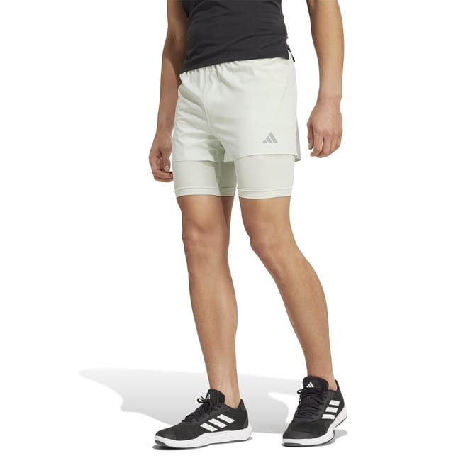 adidas shorts designed for both gym and casual settings. These solid performance shorts feature a two-in-one design with a drawstring closure for a secure fit. Part of the activewear collection, they include an inner brief for added comfort. The logo embellishment adds a touch of brand identity, making them ideal for fitness enthusiasts. -