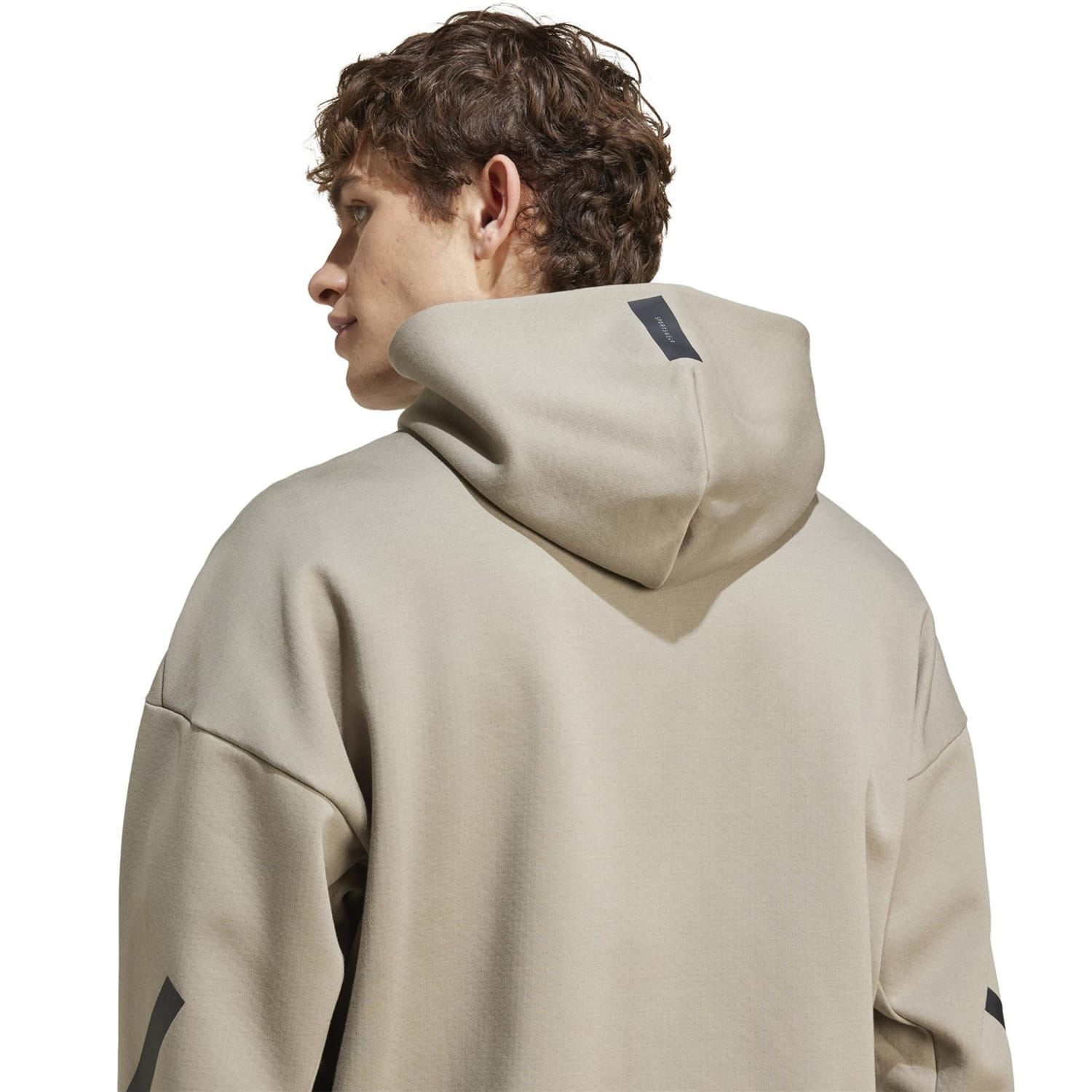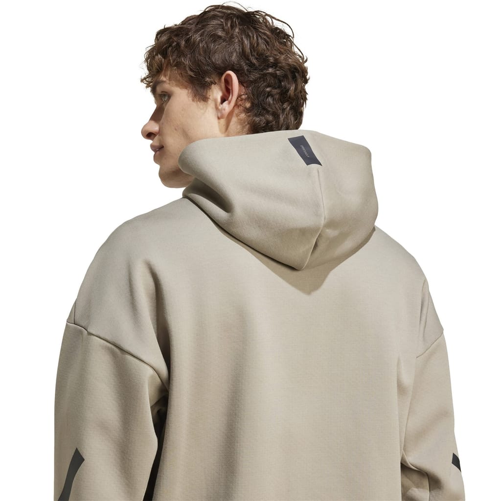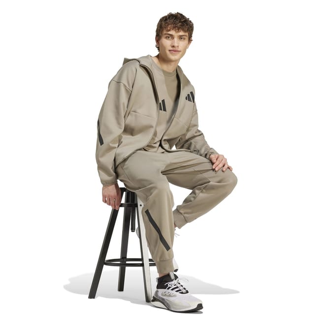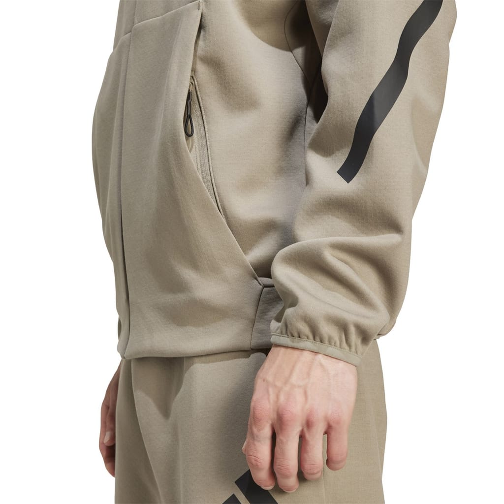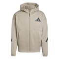 The adidas Z.N.E. sweatshirt jacket features a hooded neckline and a full zipper closure, offering a practical and stylish design. With a drop shoulder sleeve style and ribbed cuffs, it ensures a comfortable fit. The regular fit and solid pattern make it versatile, while the ribbed hem adds a touch of detail. The iconic logo embellishment completes the look, making it a must-have for any wardrobe. -