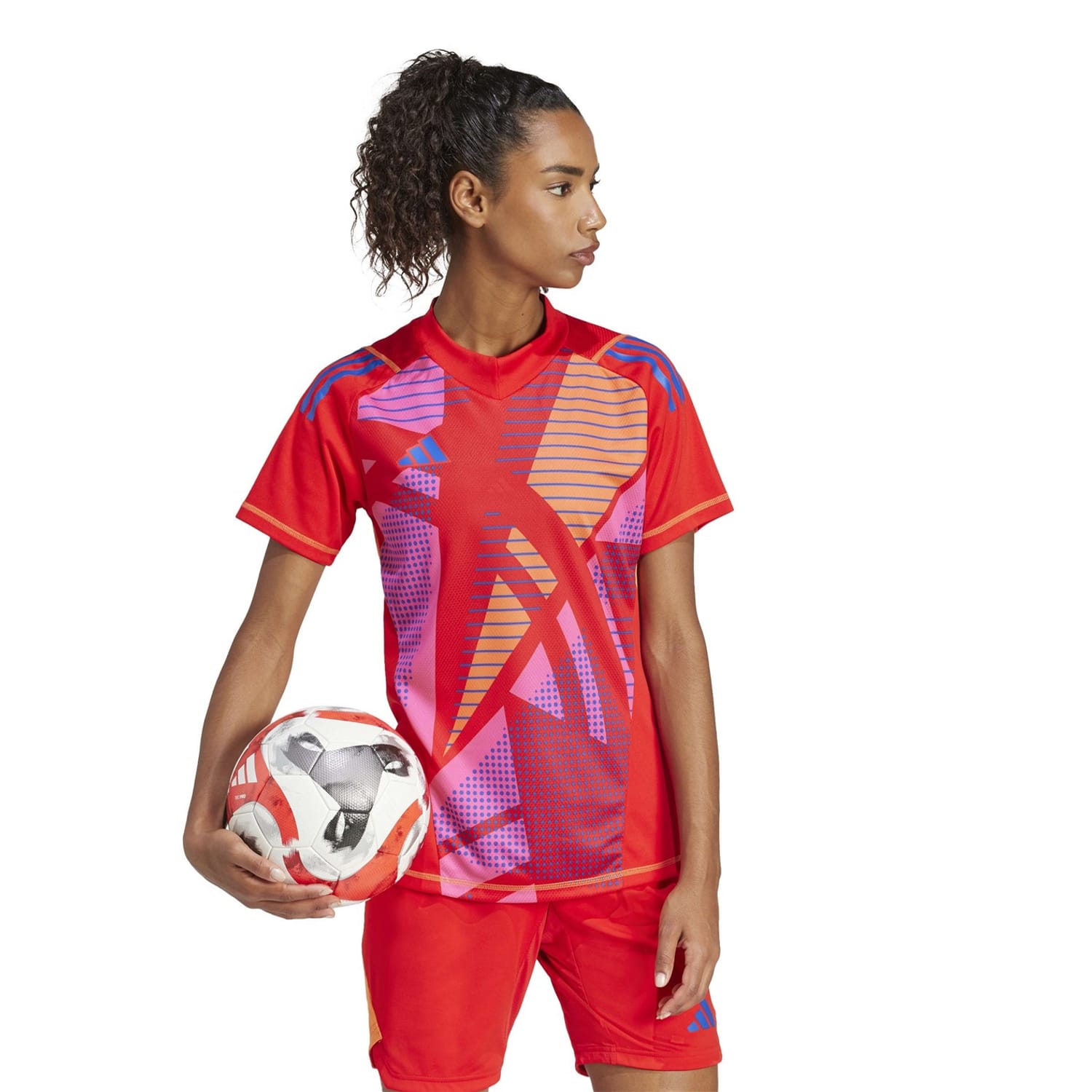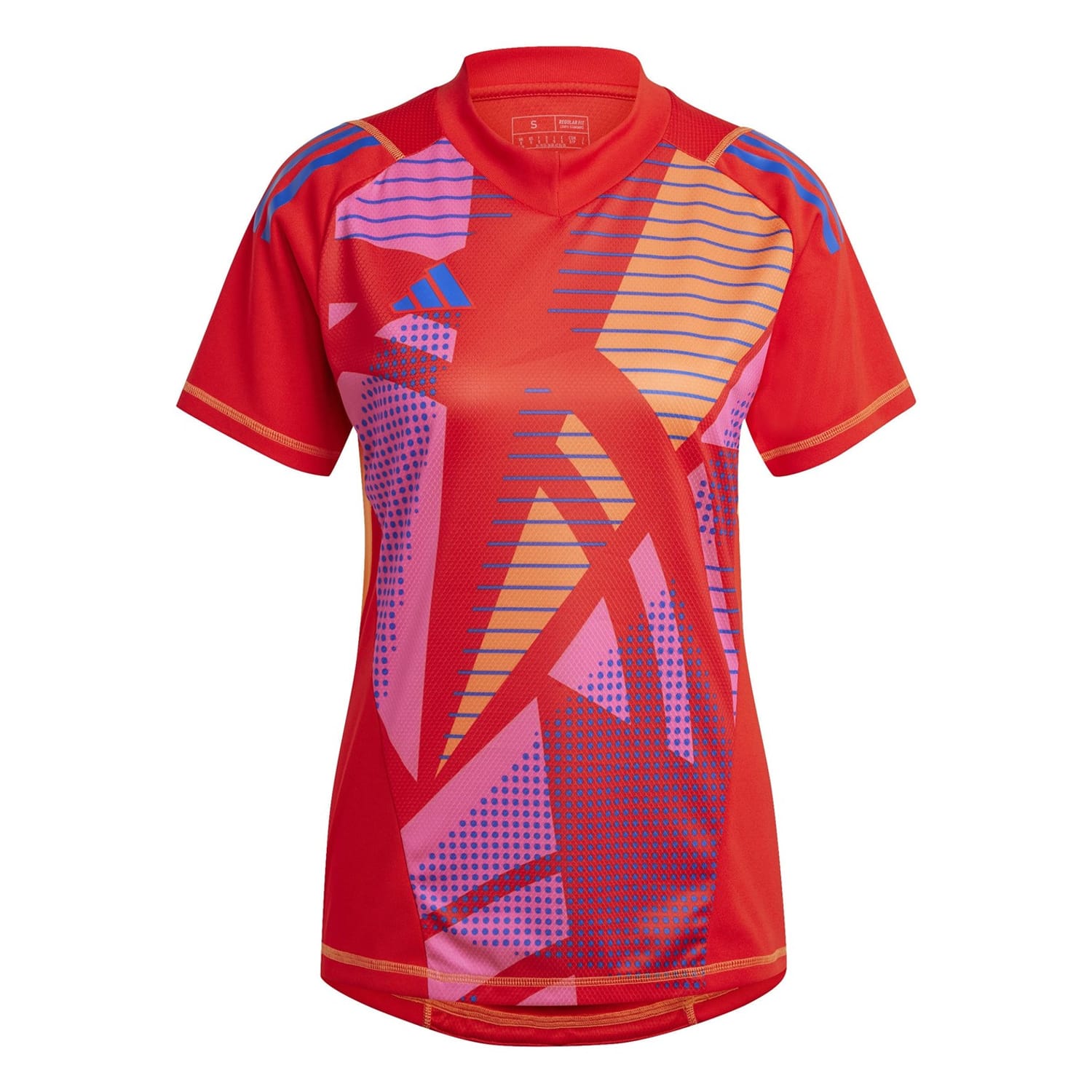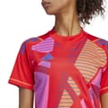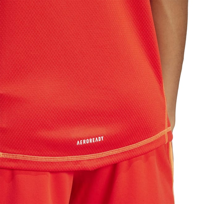 This adidas top is designed for performance, featuring a regular fit and short raglan sleeves. The v-neckline adds a touch of style, while the graphic print and logo embellishment make it a standout piece in any activewear collection. -