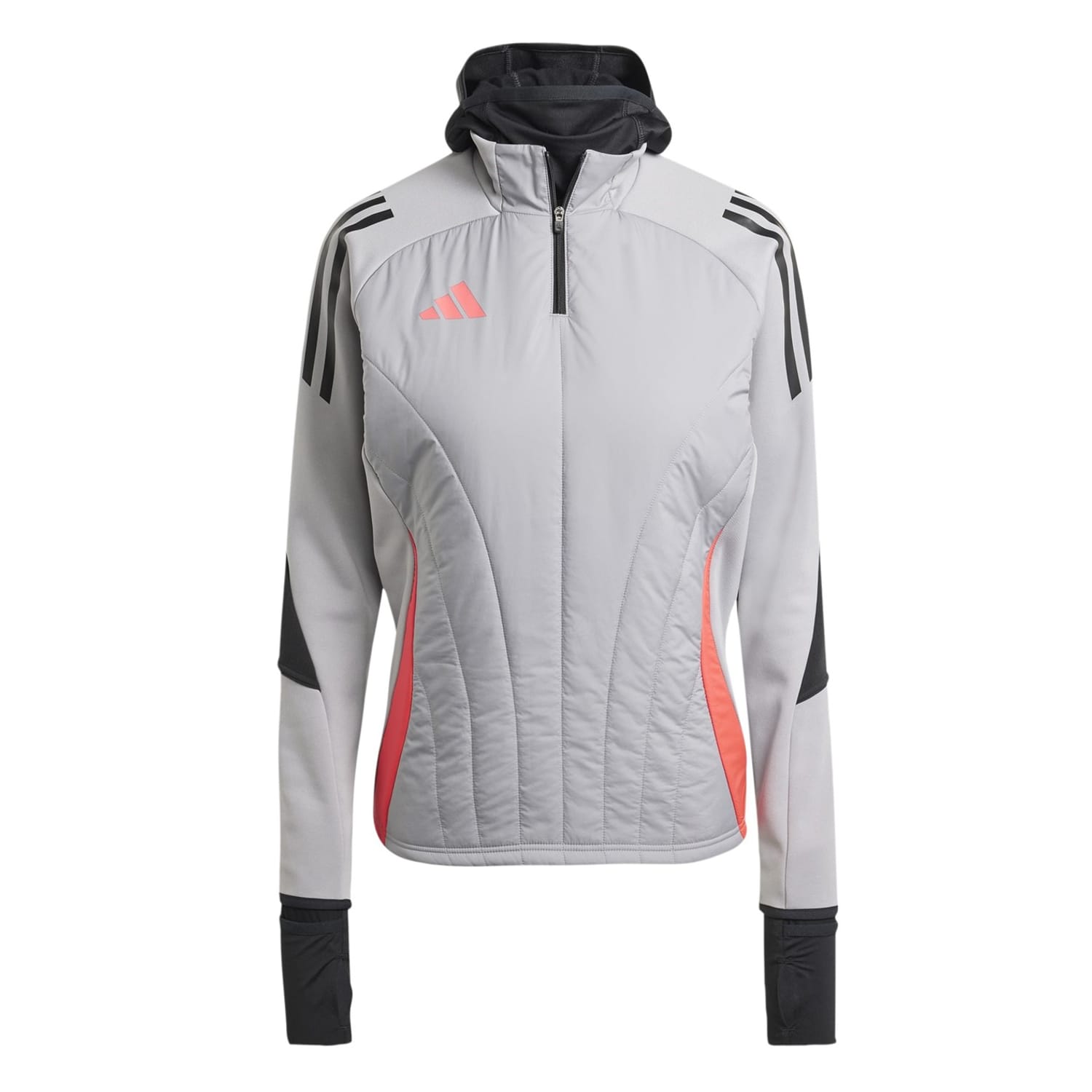 The adidas Tiro top is a winter activewear essential, featuring a solid pattern and a regular fit. It comes with a convenient zipper closure and long sleeves with ribbed cuffs. The design is enhanced by a reflective trim and the iconic three-bar logo, making it both functional and stylish for your active lifestyle. -