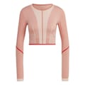 This adidas cropped top is designed for performance with a slim fit and long sleeves. Featuring a crew neck and a striking colour block pattern, it combines style and functionality seamlessly. -