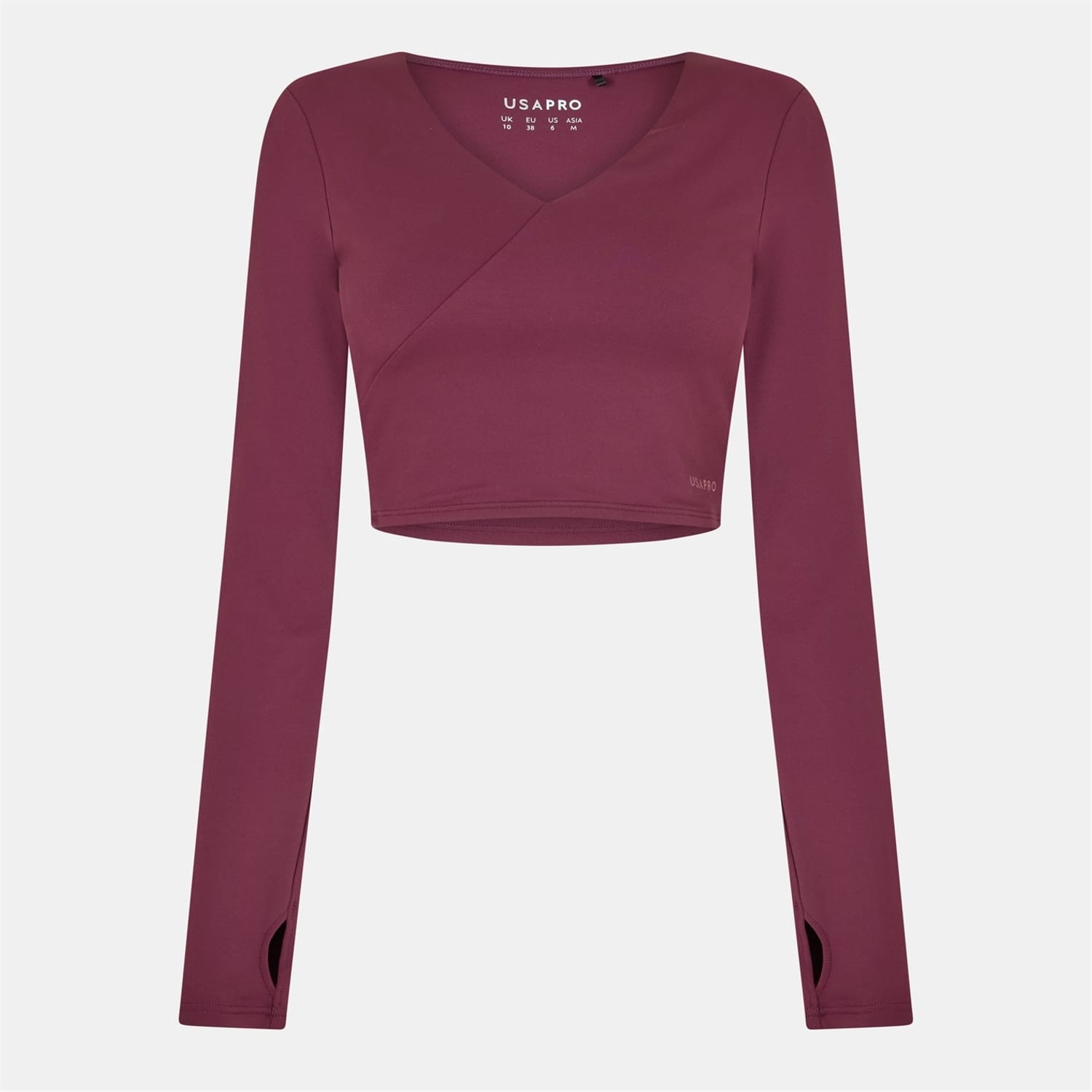 The USA Pro Wrap Front Top Womens combines fashion and function for active lifestyles. Perfect for gym sessions, yoga classes, or casual streetwear, this top offers both style and performance. Its contemporary design transitions effortlessly from workouts to everyday wear while providing comfortable coverage.