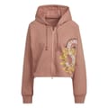 This adidas sweatshirt jacket from the casual collection features a hooded neckline and a relaxed fit, perfect for a laid-back style. The jacket is designed with a zipper closure and raglan sleeves, complemented by ribbed cuffs for added comfort. It showcases a graphic print with lettering and a logo embellishment, all finished with a straight hem for a clean look. -