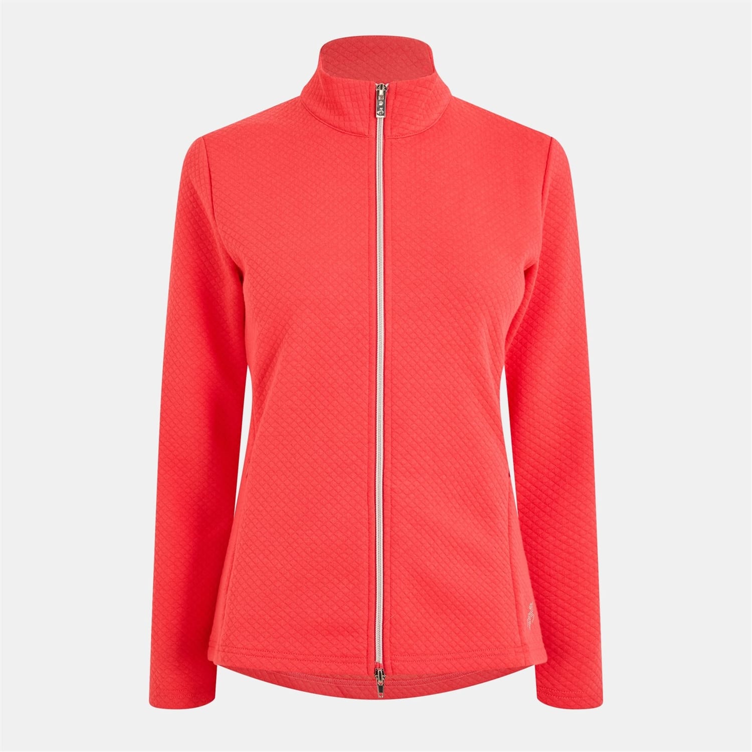 The Calvin Klein Golf track jacket from the activewear collection is designed for performance. It features a textured pattern with a zip neck and a straight hem. The regular fit ensures comfort, while the zipper closure adds practicality. A subtle logo embellishment completes the look, making it a versatile addition to your wardrobe. -