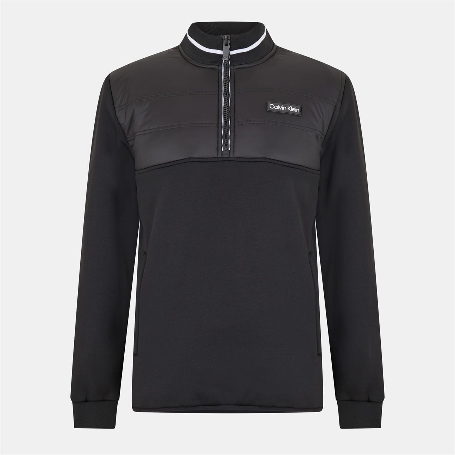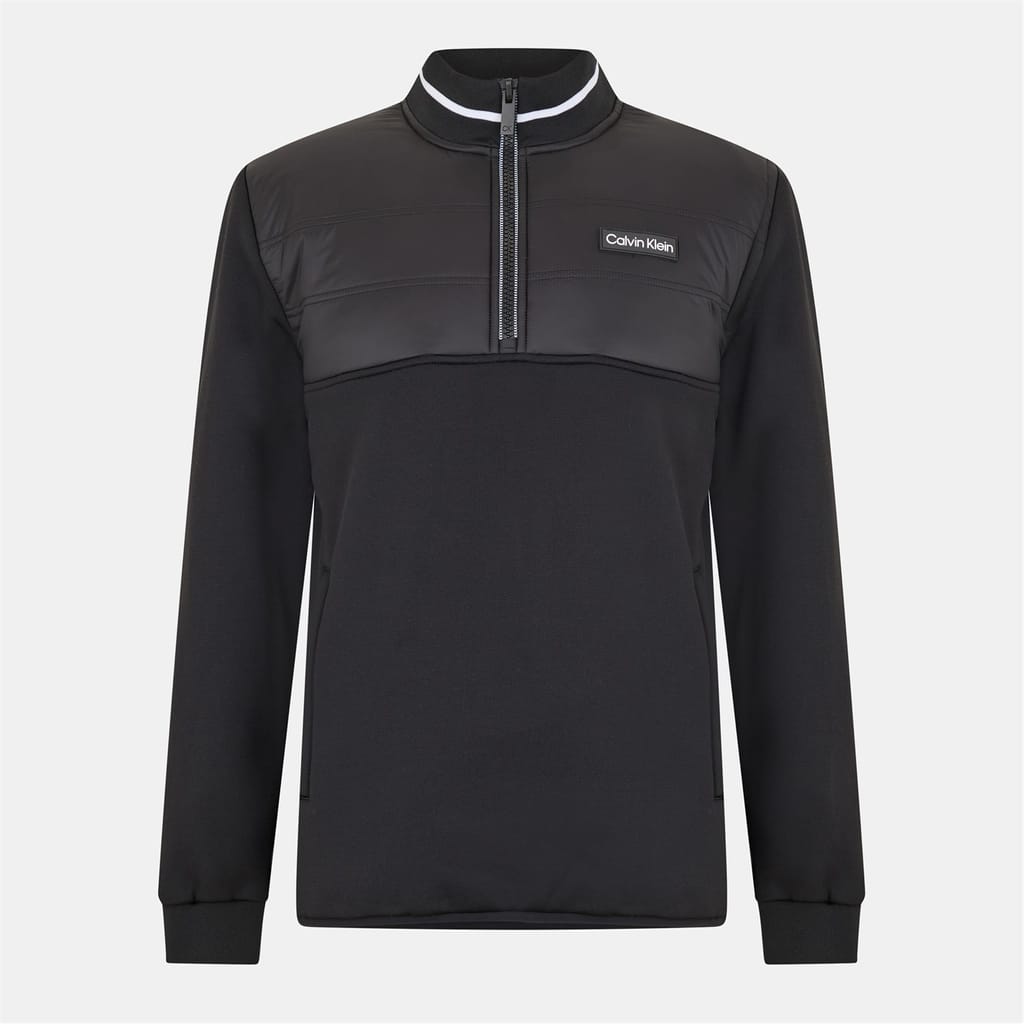 The Calvin Klein Golf running jacket is designed for performance. It features a zip neck and a half zipper closure, providing a sleek and functional look. The jacket has a regular fit with a straight hem and ribbed cuffs, ensuring comfort and style. The solid pattern is complemented by a subtle logo embellishment, making it a versatile addition to your wardrobe. -