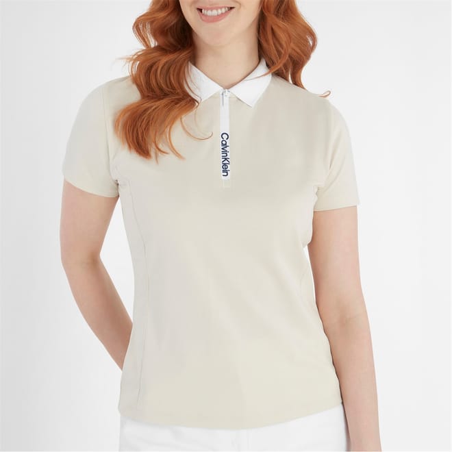 Calvin Klein Golf's Women's Short-Sleeve Performance Polo Shirt brings together technical fabric and sleek style. The streamlined shape features moisture-wicking properties and a classic polo collar for on-course performance.