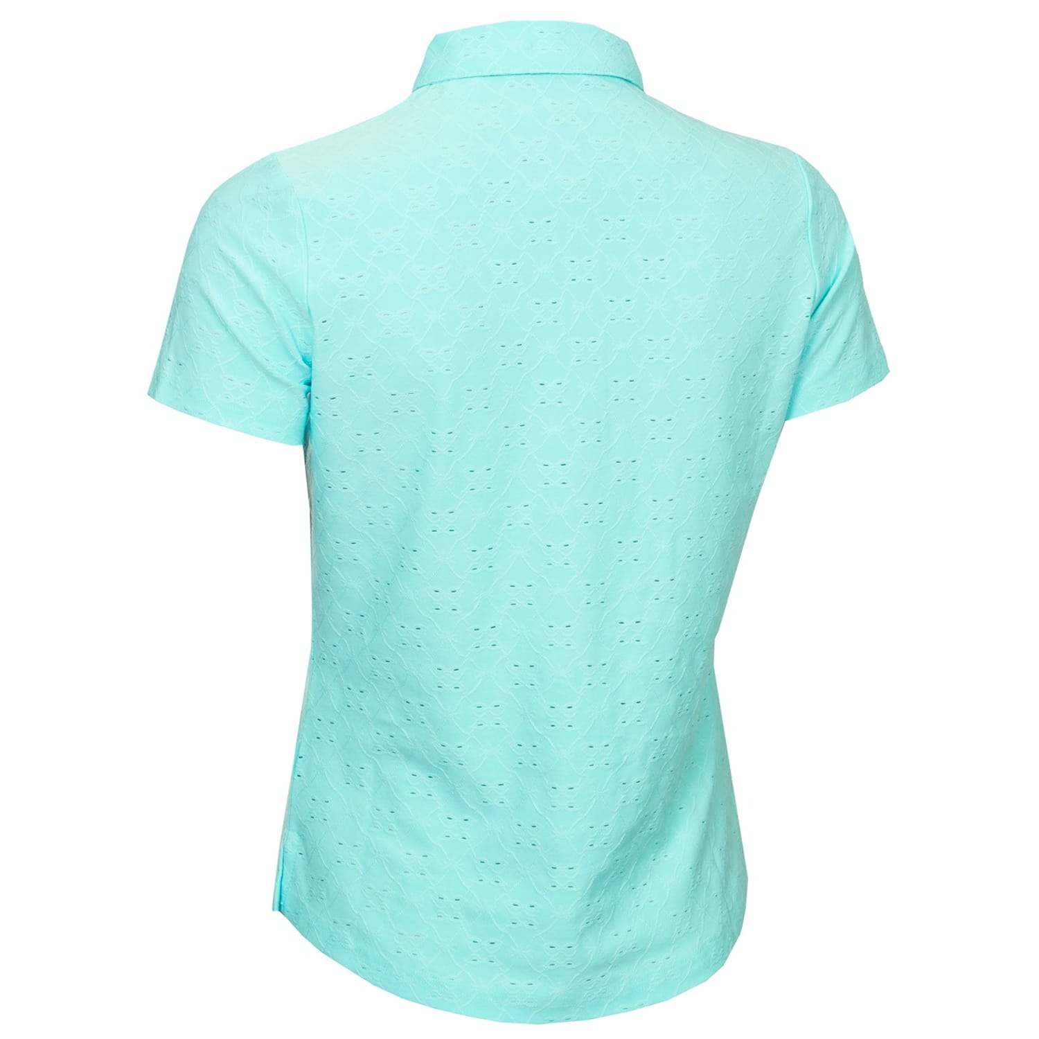 This Calvin Klein Golf top is designed for performance, featuring a solid pattern and a polo collar. The short sleeves provide comfort and ease of movement. A subtle logo embellishment adds a touch of brand identity, making it a stylish choice for any golf enthusiast. -