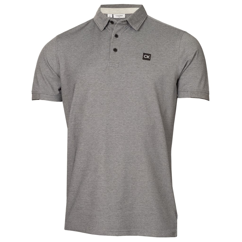 This Calvin Klein Golf top is designed for performance with a textured pattern and a regular fit. It features a polo collar and short sleeves, offering a casual yet refined look. The button closure adds a classic touch, while the logo embellishment subtly highlights the brand's identity. -