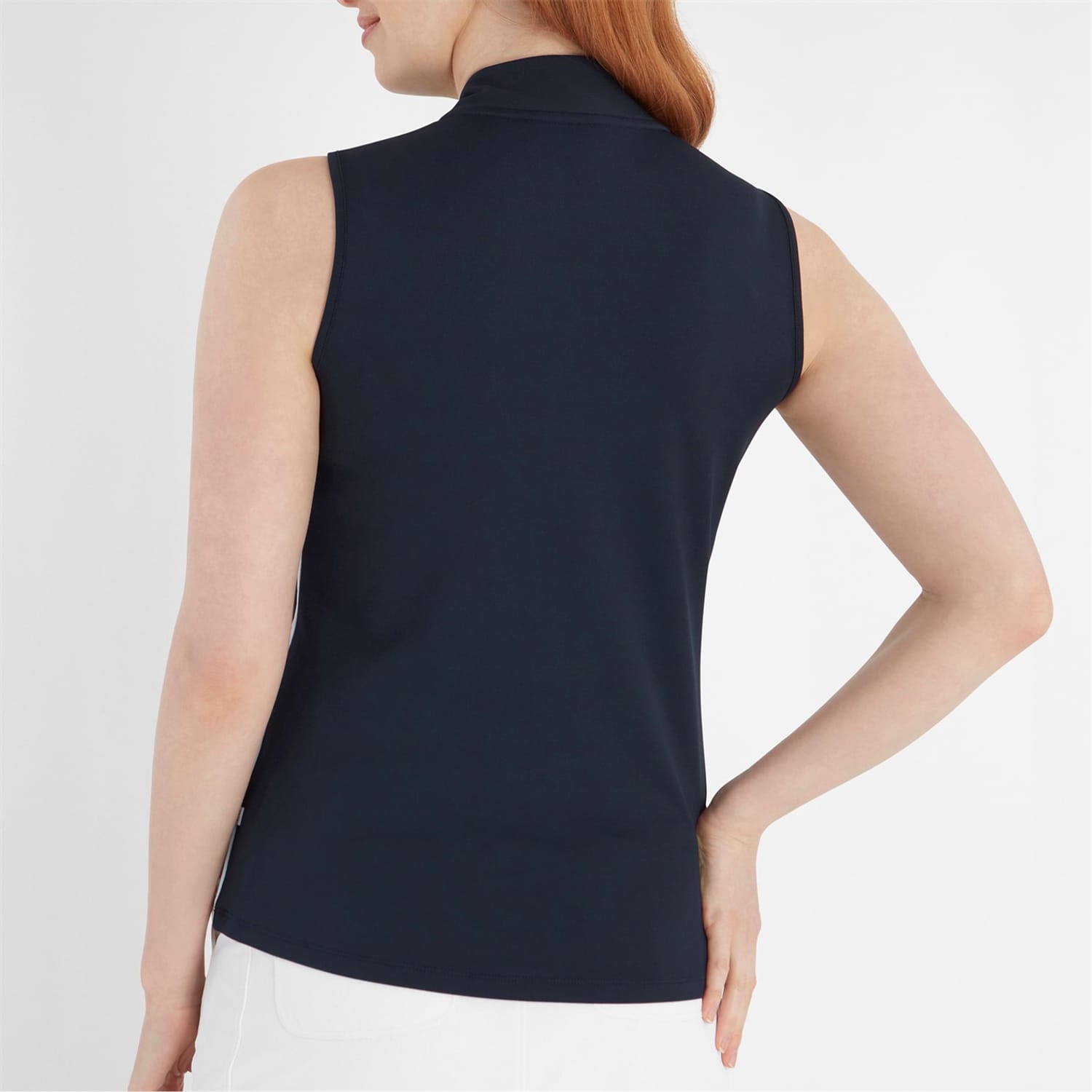 This Calvin Klein Golf top is designed for performance, featuring a sleek sleeveless design and a solid pattern. The mock neck with a zipper closure adds a modern touch, while the logo embellishment subtly showcases the brand. Ideal for those seeking a stylish yet functional addition to their wardrobe. -
