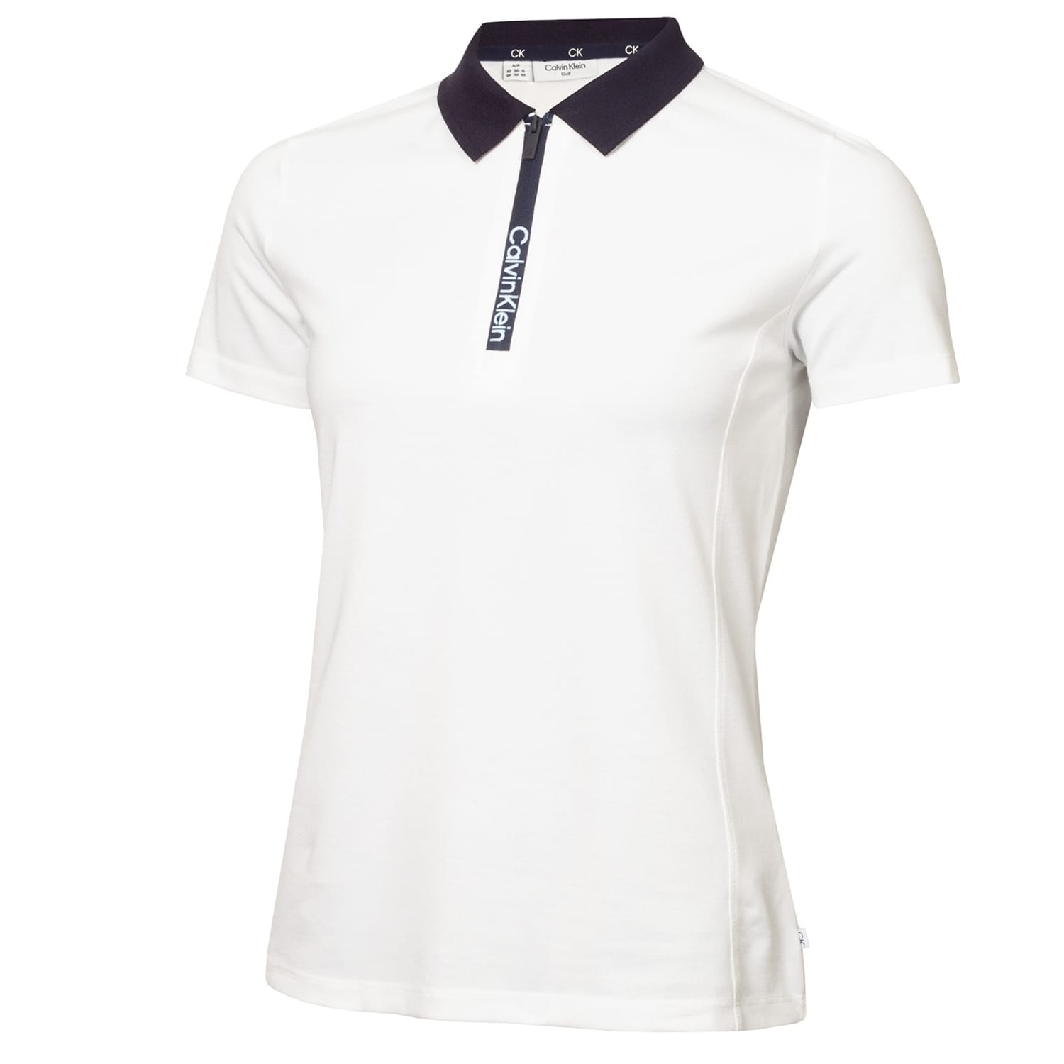 This Calvin Klein Golf top is designed for performance with a regular fit and short sleeves. Featuring a polo collar and a zip neck closure, it offers a sleek and functional style. The solid pattern and logo embellishment add a touch of sophistication, making it a versatile addition to any casual collection. -