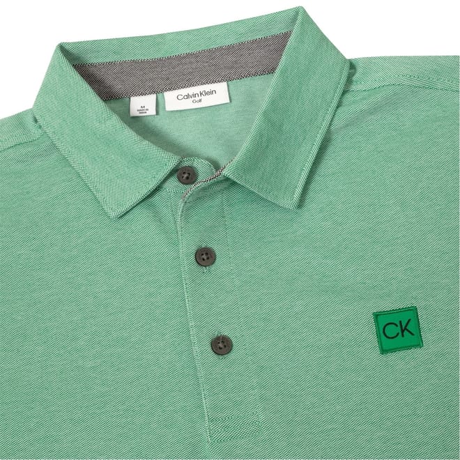 This Calvin Klein Golf top is designed for performance with a regular fit and short sleeves. It features a solid pattern and a polo collar with a button closure. The ribbed cuffs add a touch of style, while the logo embellishment provides a subtle brand detail. -