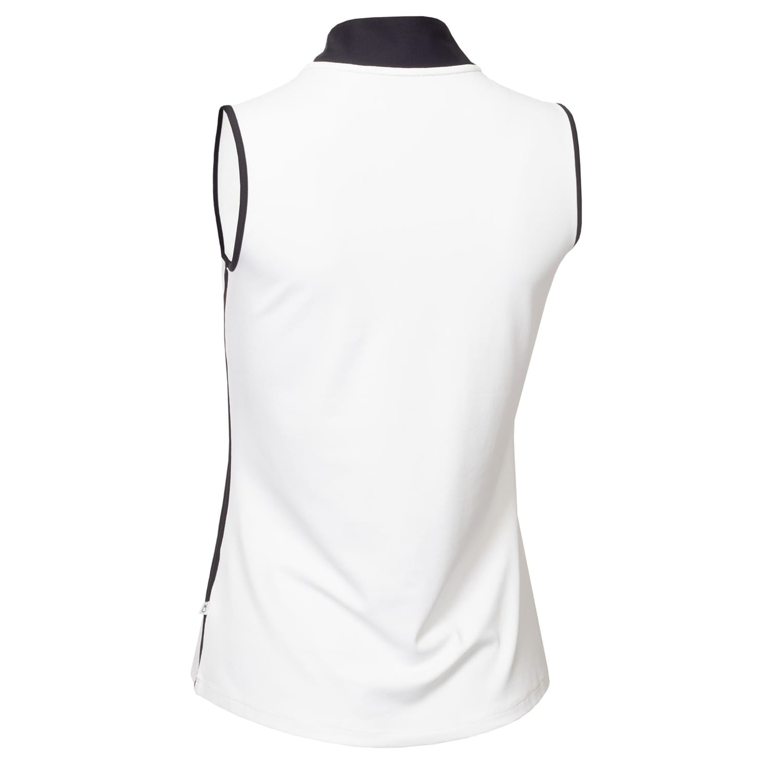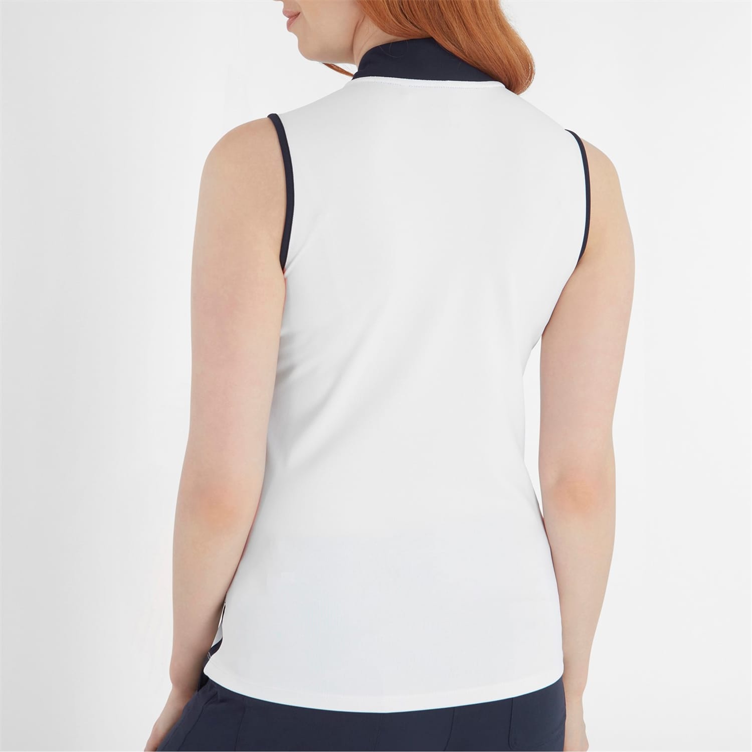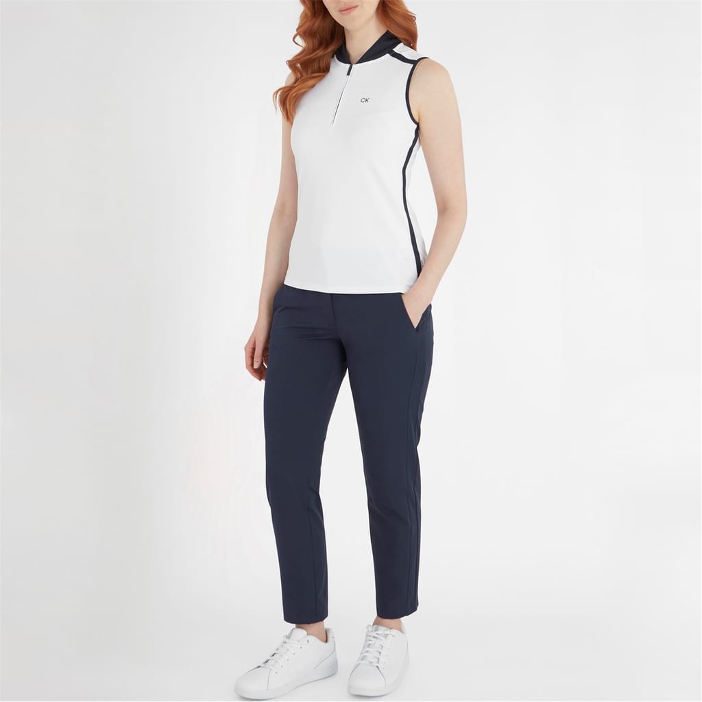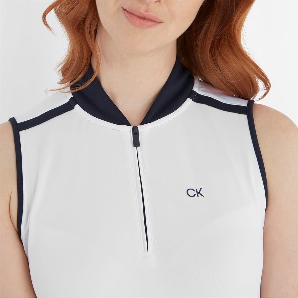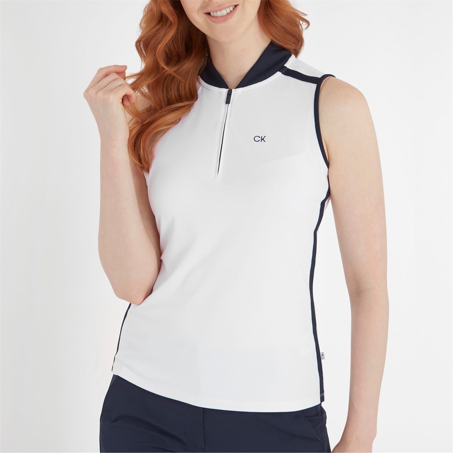 Calvin Klein Golf's Women's Sleeveless Performance Polo Shirt delivers a smart athletic style with technical performance features. The sleeveless design offers unrestricted movement while maintaining the classic polo shape.