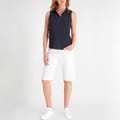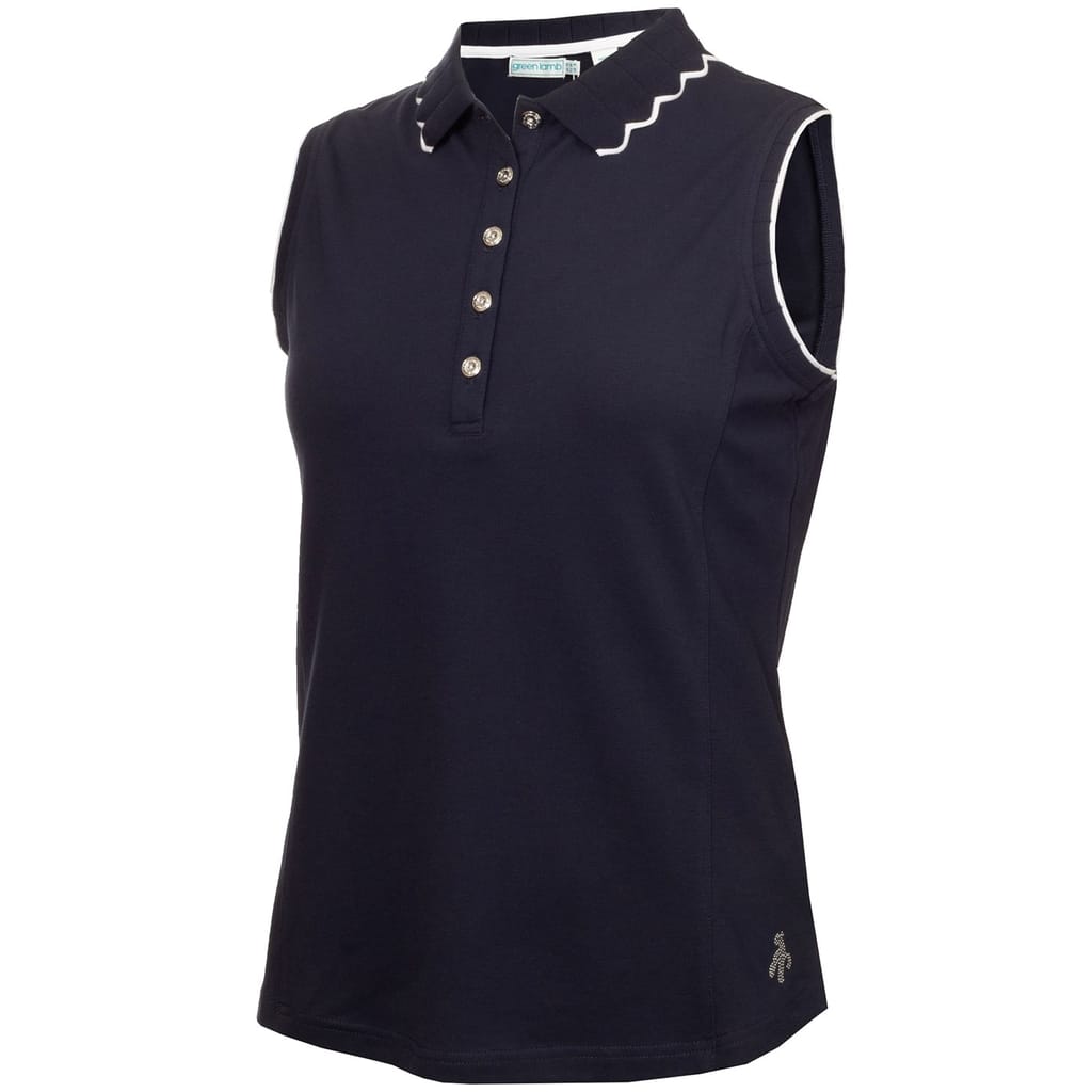 Stay cool, stylish, and swing-ready with the Green Lamb Nadia Sleeveless Polo Shirt. The sleeveless cut allows for full range of motion, while the tailored fit adds a touch of elegance to your golf wardrobe. Ideal for sunny rounds of golf, casual summer outings, or layering under a light jacket.