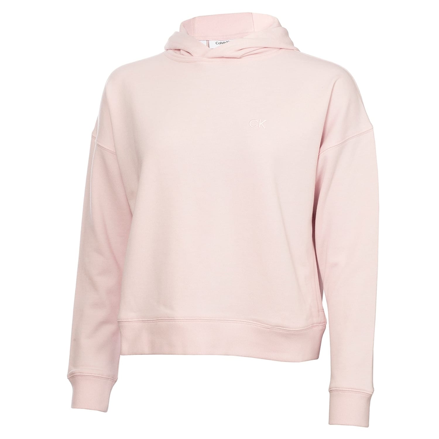 This Calvin Klein Golf top is a casual essential, featuring a hooded neck and long sleeves with drop shoulders. The relaxed fit ensures comfort, while the ribbed cuffs add a touch of style. The solid pattern is complemented by a subtle logo embellishment, making it a versatile addition to your wardrobe. -