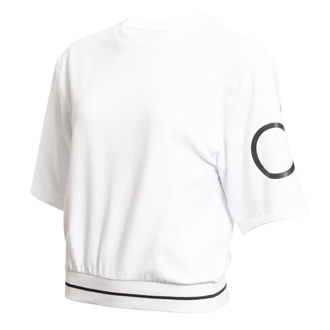 This Calvin Klein Golf top features a regular fit with a crew neck and short sleeves. The ribbed cuffs add a touch of detail, while the large genie graphic print makes a bold statement. Part of the casual collection, it includes a logo embellishment for a signature touch. -