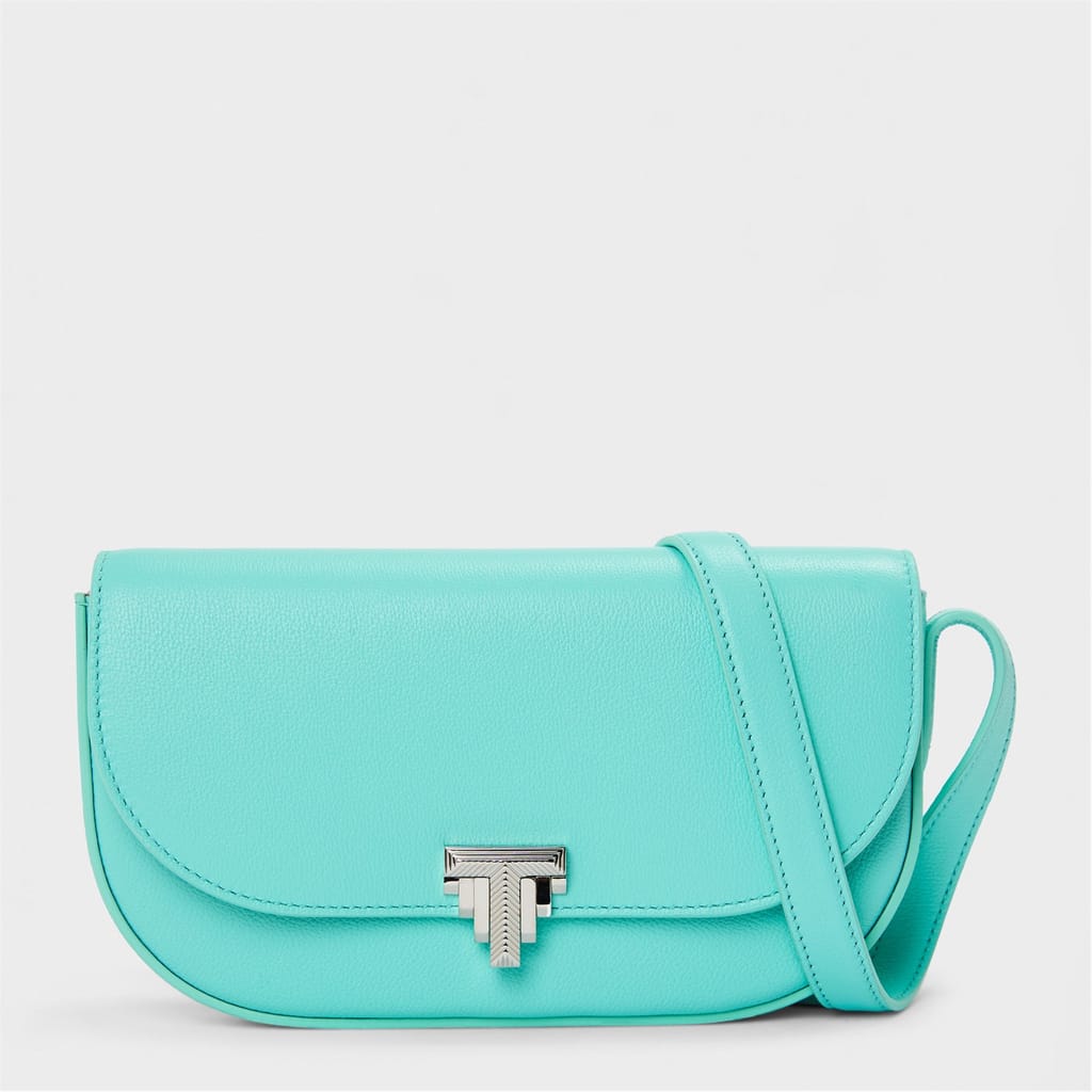 This Tiffany wallet on chain is a sophisticated accessory featuring a clasp closure and a shoulder handle for versatile carrying. Adorned with a chain and a distinctive logo, it combines elegance with practicality, making it a stylish choice for any occasion. -