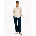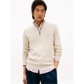 This Tommy Hilfiger top features a stylish horizontal stripe pattern and a prominent logo embellishment. Designed with a zip neck and high collar, it offers a regular fit for comfort. The long sleeves are complemented by ribbed cuffs, while the ribbed hem adds a touch of detail. A quarter zipper closure completes the look, making it a versatile addition to your wardrobe. -