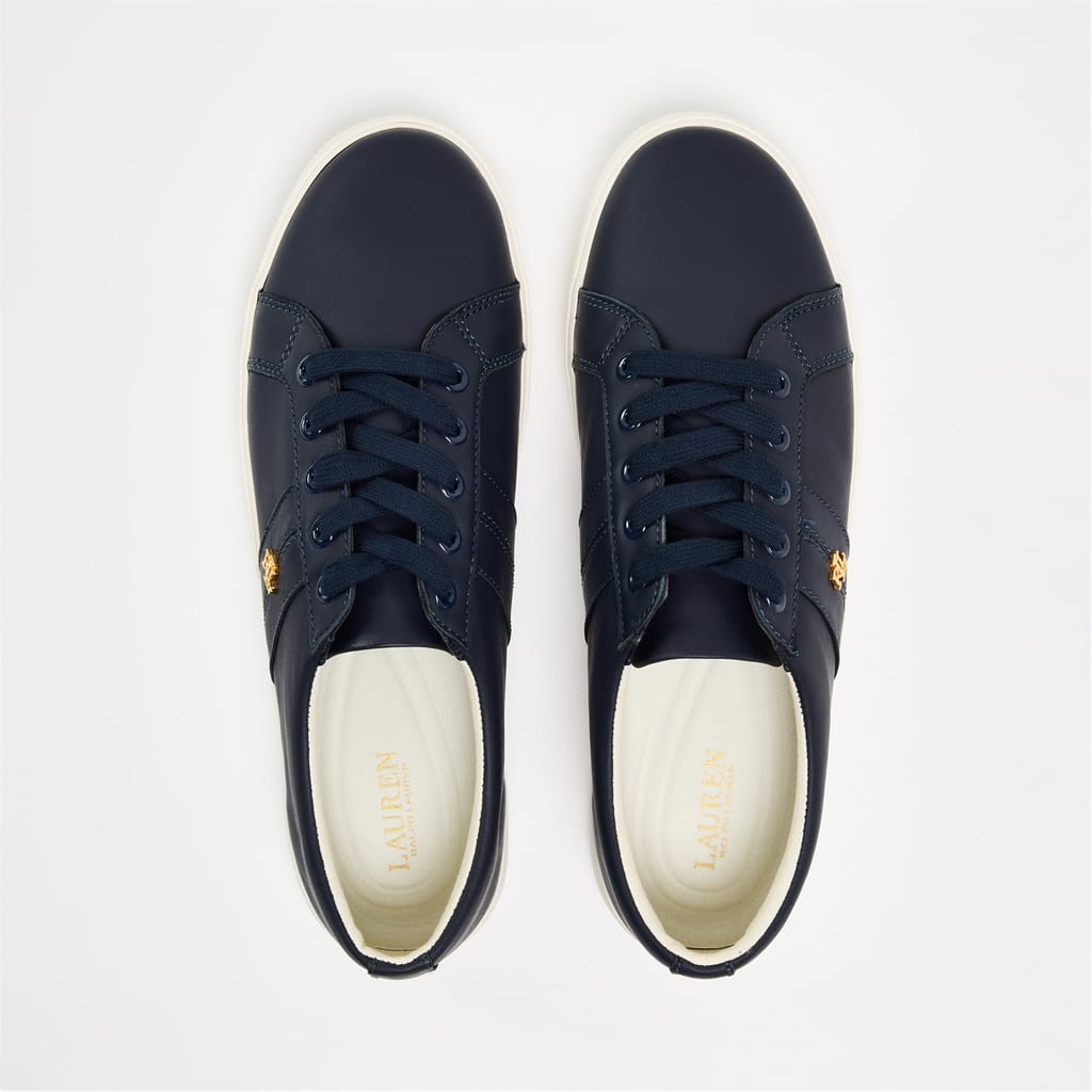 Classic court styling meets contemporary design in these Lauren by Ralph Lauren Janson trainers. The smooth leather upper creates a polished finish while the minimalist construction delivers timeless appeal. A subtle gold-tone brand emblem adorns the side, adding just the right amount of signature style to these versatile low-top trainers. The cushioned footbed and durable rubber outsole work together to provide day-long comfort and reliable traction.