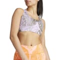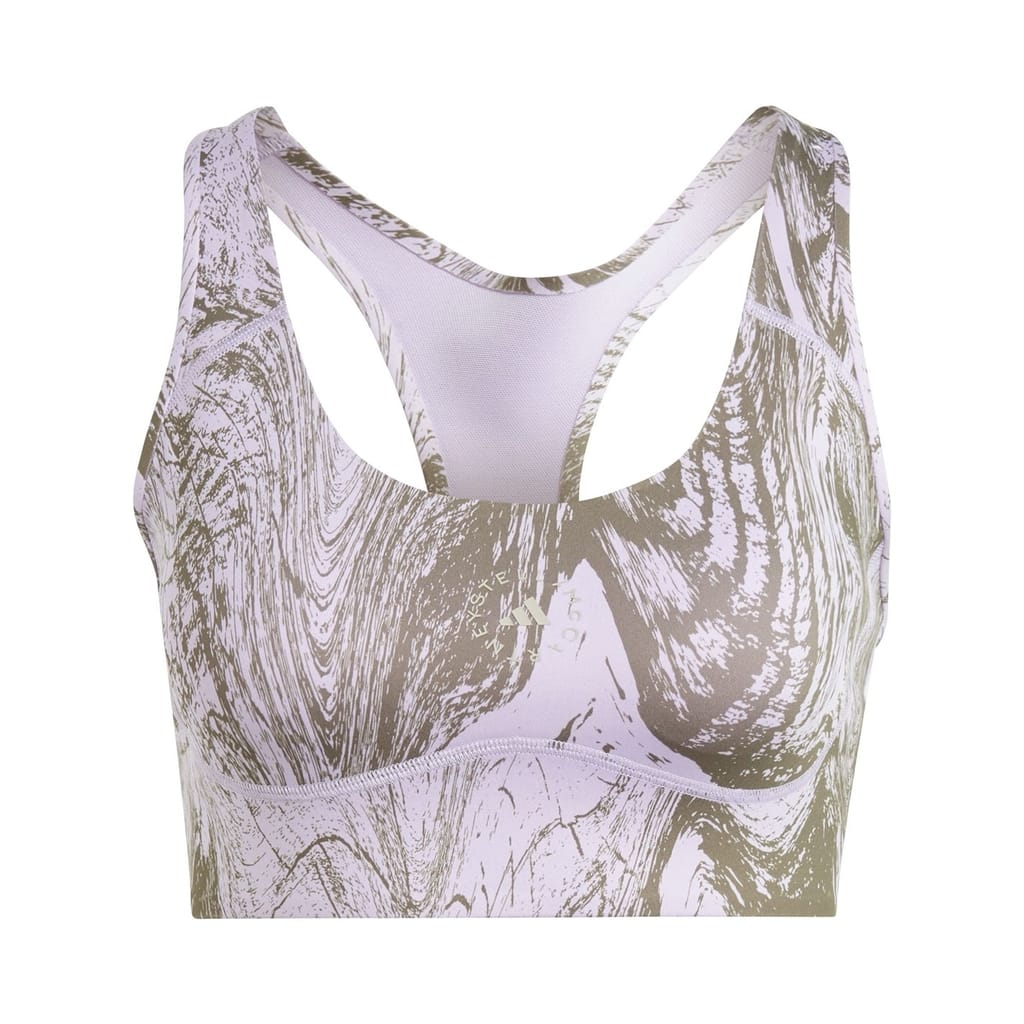 This adidas cropped top is perfect for activewear enthusiasts. Featuring a sleeveless design and a scoop neck, it offers medium impact support. The marble print adds a stylish touch, while the logo embellishment highlights the brand's iconic style. Ideal for sporting activities, this top combines functionality with a modern aesthetic. -