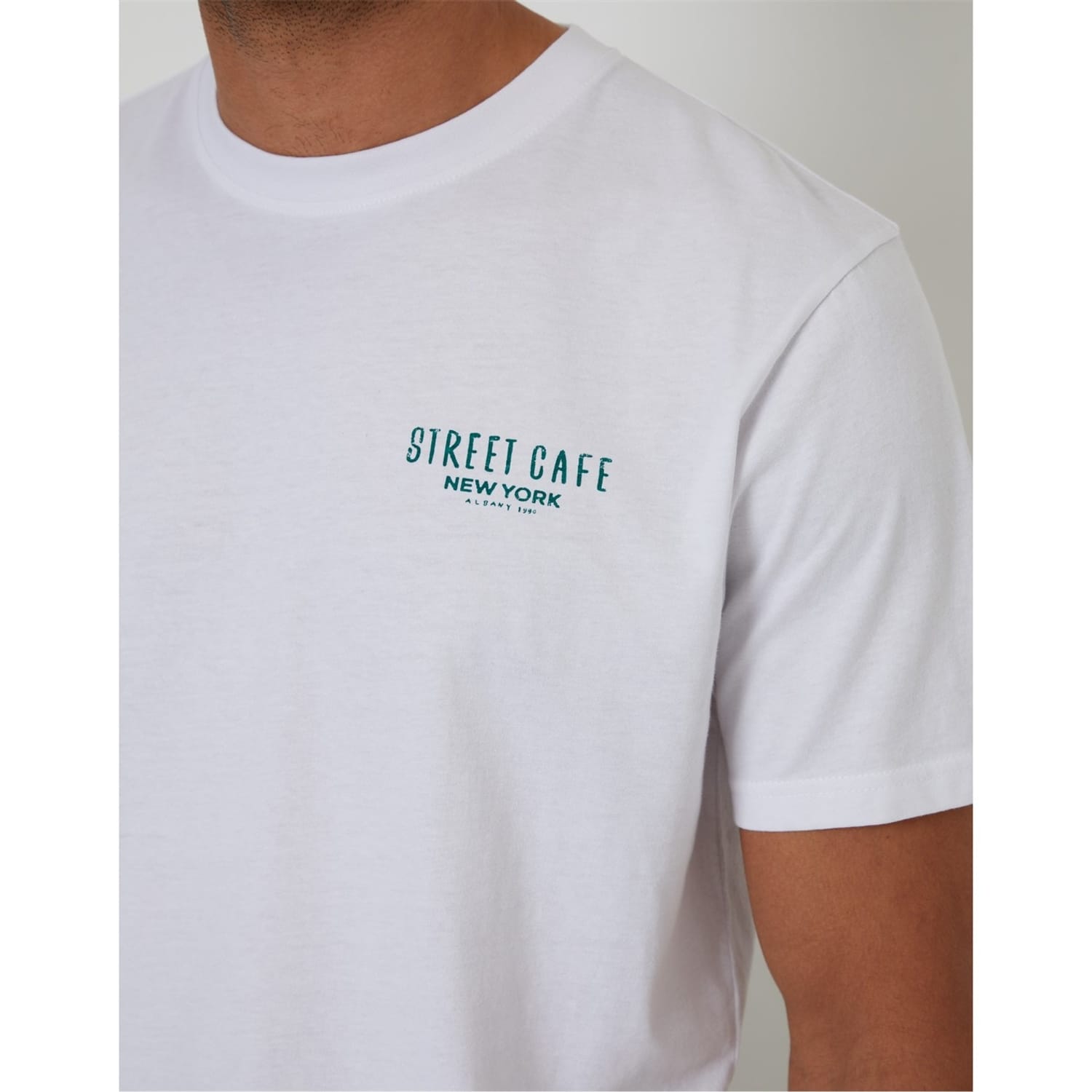 The Threadbare Albany top is a casual piece featuring a crew neck and short sleeves. It showcases a graphic print with lettering and a logo embellishment, offering a regular fit. Ideal for everyday wear, this top combines style and comfort effortlessly. -