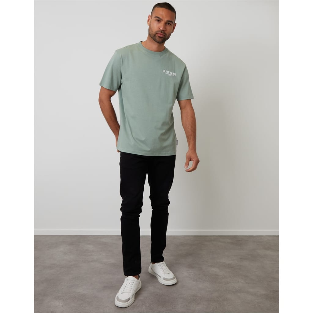 Discover casual style with Threadbare's top, featuring a regular fit and short sleeves. The crew neck design is complemented by a graphic print and text graphic, adding a modern touch. A subtle logo embellishment completes the look, making it a versatile addition to your wardrobe. -