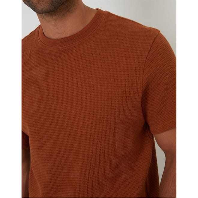Discover the Threadbare top, a casual essential with a regular fit. This short-sleeve piece features a crew neck and a distinctive waffle pattern, perfect for a relaxed look. -