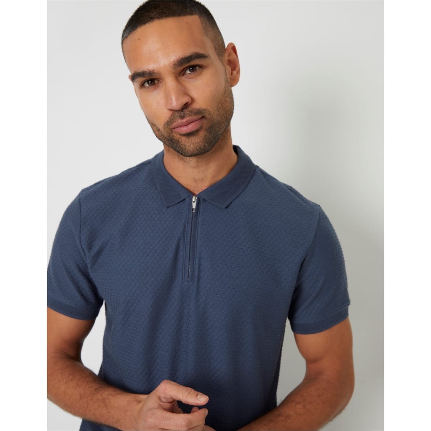 Discover the Threadbare top, a semi-formal piece with a textured pattern. This short-sleeve design features a polo collar and a convenient zipper closure. The regular fit ensures comfort, while the ribbed cuffs add a touch of detail. -