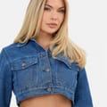 A fresh twist on a classic, this cropped denim jacket is designed with long sleeves and a boxy fit for modern edge. The versatile silhouette layers easily over dresses, tees, or tanks, making it a go-to piece for effortless style year-round. -