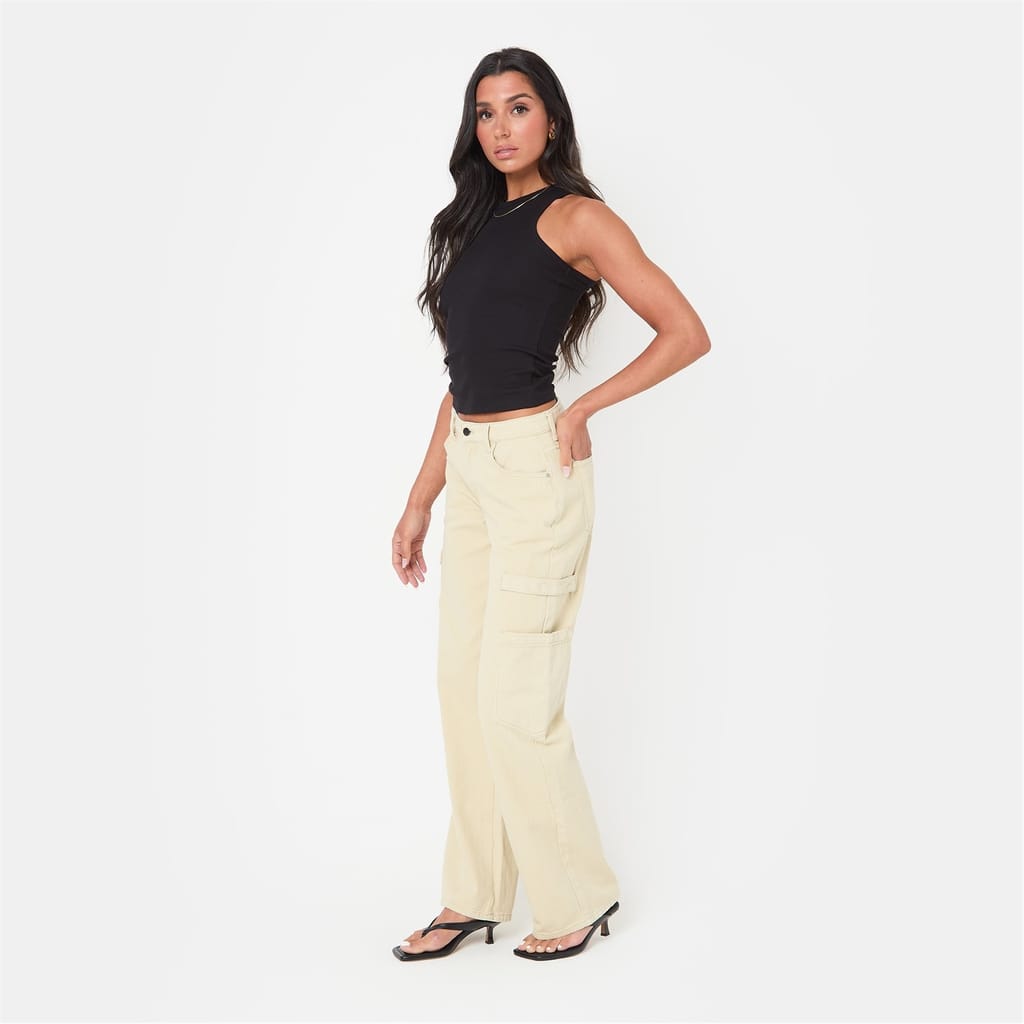 Effortlessly cool and functional, these low-rise cargo jeans feature a relaxed wide-leg silhouette with utility-inspired details. Multiple pockets add both style and practicality, while the durable denim fabric ensures all-day comfort. Perfect for laid-back streetwear looks or casual everyday wear. -
