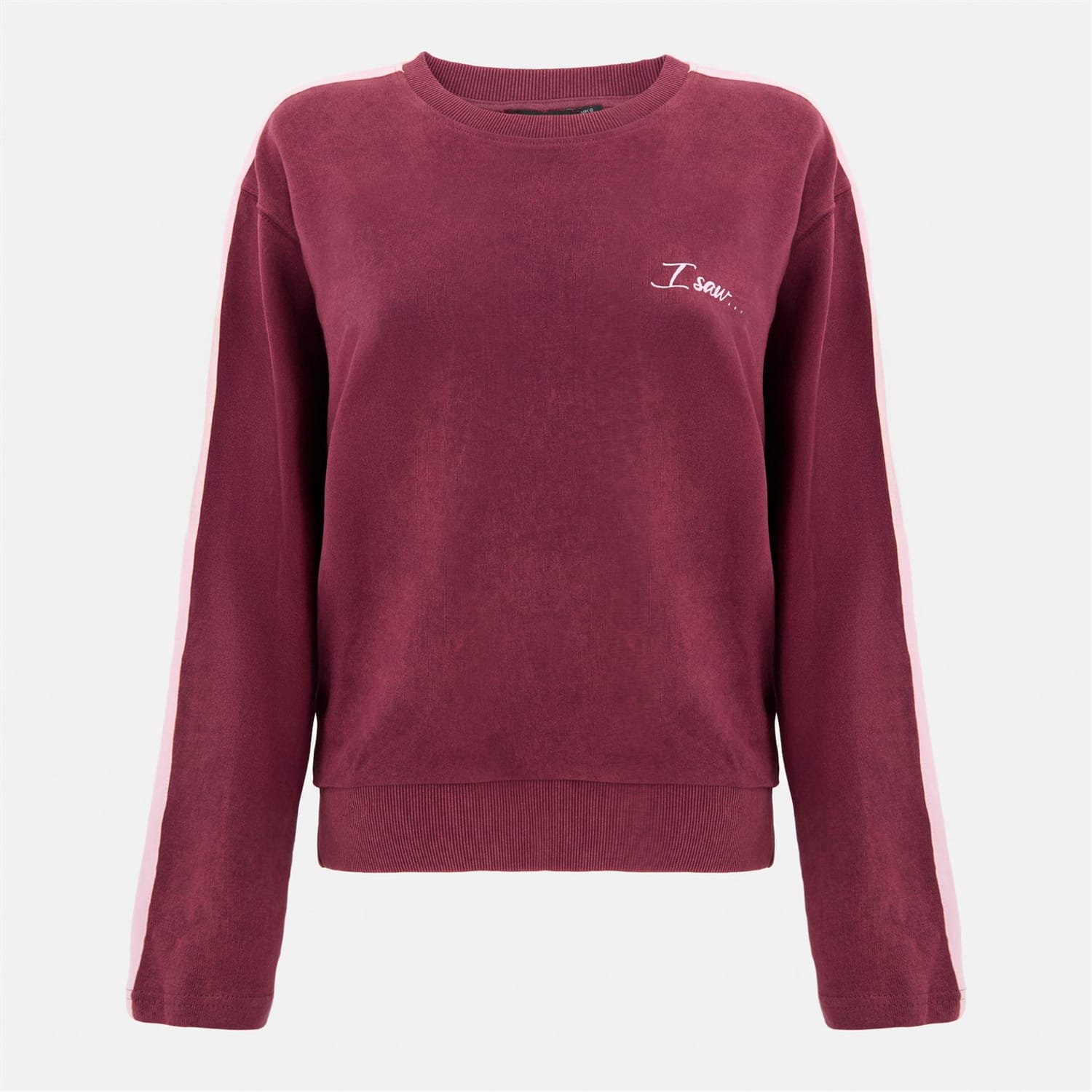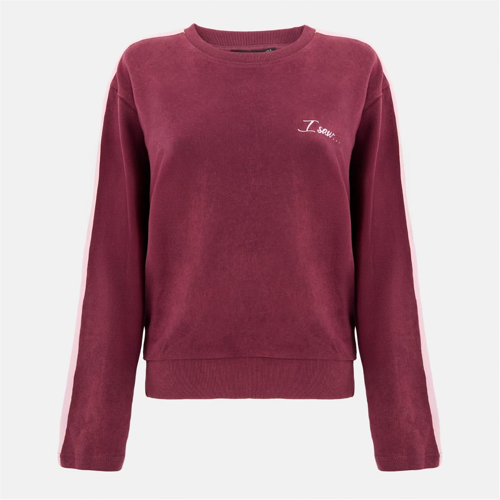 Casual comfort meets standout detail. This washed burgundy sweatshirt features bold side stripes and a relaxed fit, giving everyday wear a sporty, vintage-inspired edge. -